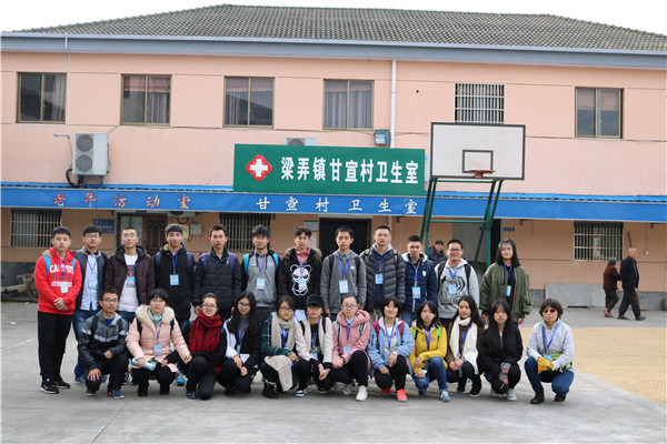 在镇政府食堂吃完午餐之后,大家适当休息了一会儿,在门口拍完集体照,两位老师带着自己班的同学进行第二部分的活动。梁清华老师带我们到达做志愿者服务的村庄——甘宣村(垃圾分类的试点村),我们发现在当地随处可见有关垃圾分类的墙壁画。