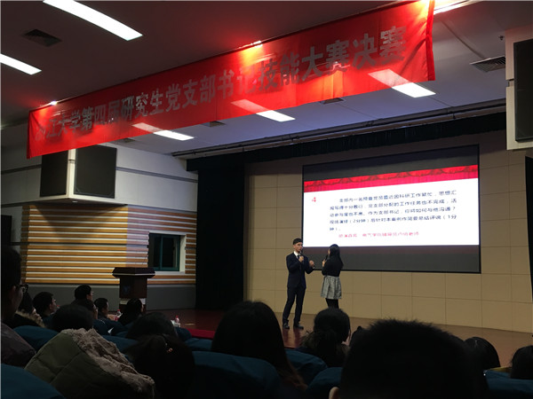 12月26日晚,浙江大学第四届研究生党支部书记技能大赛决赛在紫金港校区临水报告厅举办。校党委副书记胡旭阳出席并担任评委,担任评委的还有宣传部部长应彪、研工部部长吕淼华、组织部副部长王志强、研工部副部长陈凯旋、农业与生物技术学院党委副书记金敏、机械工程学院党委副书记王晓莹。我院党委副书记徐晓霞到场观赛。