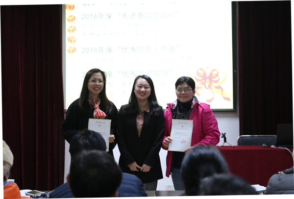 接着,吕有志宣读了学院2016年度各级各类获奖名单,学院领导为获得学院奖励的教师颁发获奖证书并合影。