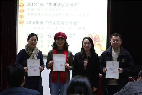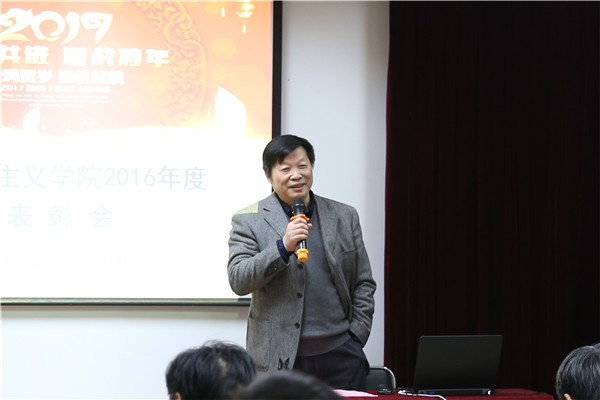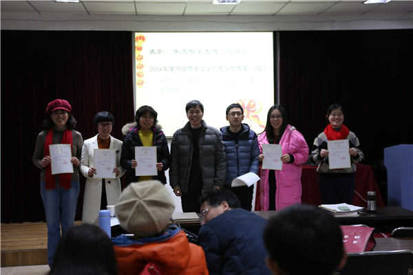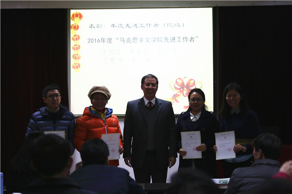 1月14日下午,马克思主义学院2016年度工作总结表彰会在西溪校区教学主楼1109教室召开,会议由学院党委书记吕有志主持,全体教职员工参加了会议。