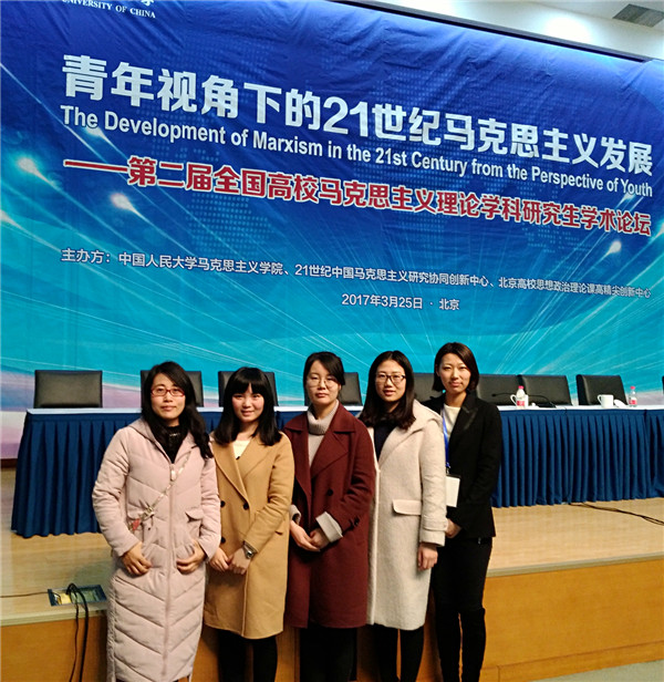 2017年3月25日,由中国人民大学马克思主义学院、北京高校思想政治理论课高精尖创新中心、21世纪中国马克思主义研究协同创新中心联合主办的第二届全国高校马克思主义理论学科研究生学术论坛在中国人民大学逸夫会堂举办。中国人民大学党委副书记、纪委书记吴付来出席论坛开幕式并代表学校致欢迎辞。中国人民大学、北京大学、清华大学、浙江大学等80余所国内高校的400余名师生代表参加了论坛。我院博士生顾青青、杨光、许占鲁、李爽,硕士生刘妍应邀参加论坛。