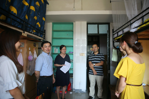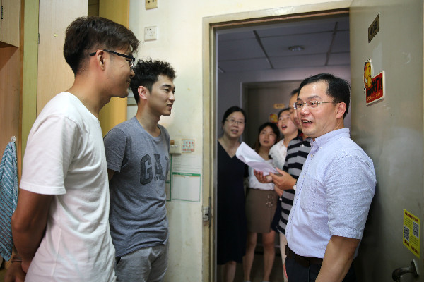 为帮助学院2017级研究生新生更快、更好地适应新环境,9月18日下午,学院党委书记李小东、党委副书记徐晓霞和研究生德育导师代玉启一行对学院在西溪校区的每一间新生宿舍进行了走访,了解新生情况,带去学院关怀。