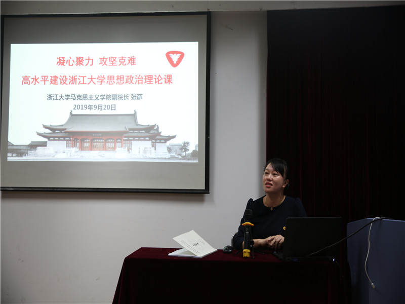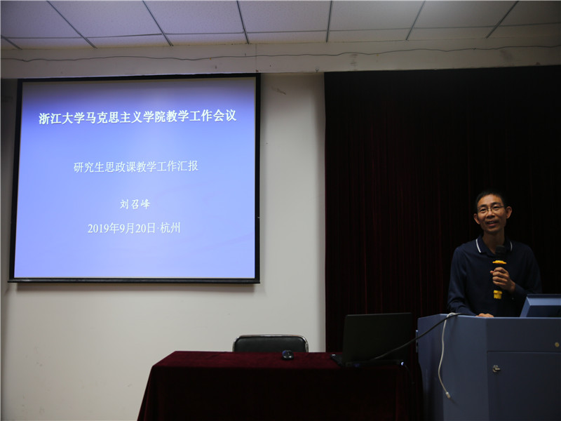 会议第一阶段,副院长张彦教授向大会作题为“凝心聚力、攻坚克难,高水平建设浙江大学思想政治理论课”的2018-2019学年教学工作报告。报告之初,张彦副院长带领全体教师学习了中共中央办公厅、国务院办公厅印发的《关于深化新时代学校思想政治理论课改革创新的若干意见》和中共教育部党组印发的《“新时代高校思想政治理论课创优行动”工作方案》两份文件,逐条解读了其中与思想政治理论课建设相关内容,帮助教师了解新时代学校思想政治理论课改革创新重要意义、指导思想、基本原则和具体举措。之后张彦副院长对2018-2019学年的教学工作进行全面总结,从课堂教学、教学活动、教学产出、教学获奖、媒体报道、本科教学工作审核评估等方面全面回顾了过去一年马克思主义学院教学工作,展现了全体教师的教学风采。现场教学工作是本学年马克思主义学院教学的重要特色,张彦副院长结合《马克思主义学院现场教学指导手册》介绍了学院近年来现场教学工作情况、现场教学活动开展流程和常见问题的解决办法,鼓励教师在学院大力支持的背景下多带学生出去走走看看。上一学年马克思主义学院教学工作取得了长足的进步,结合浙江“三个地”特色优势优化教学内容,整体推进教学改革提升教学质量,积极举办各类活动营造教学氛围,认真修订教学条例完善教学规范。下一学年,马克思主义学院思想政治理论课教学工作将在课程体系完善、教学方法改革、教研工作形式创新和思政课现场教学等方面着重发力,争取进一步提升思想政治理论课思想性、理论性和亲和力。