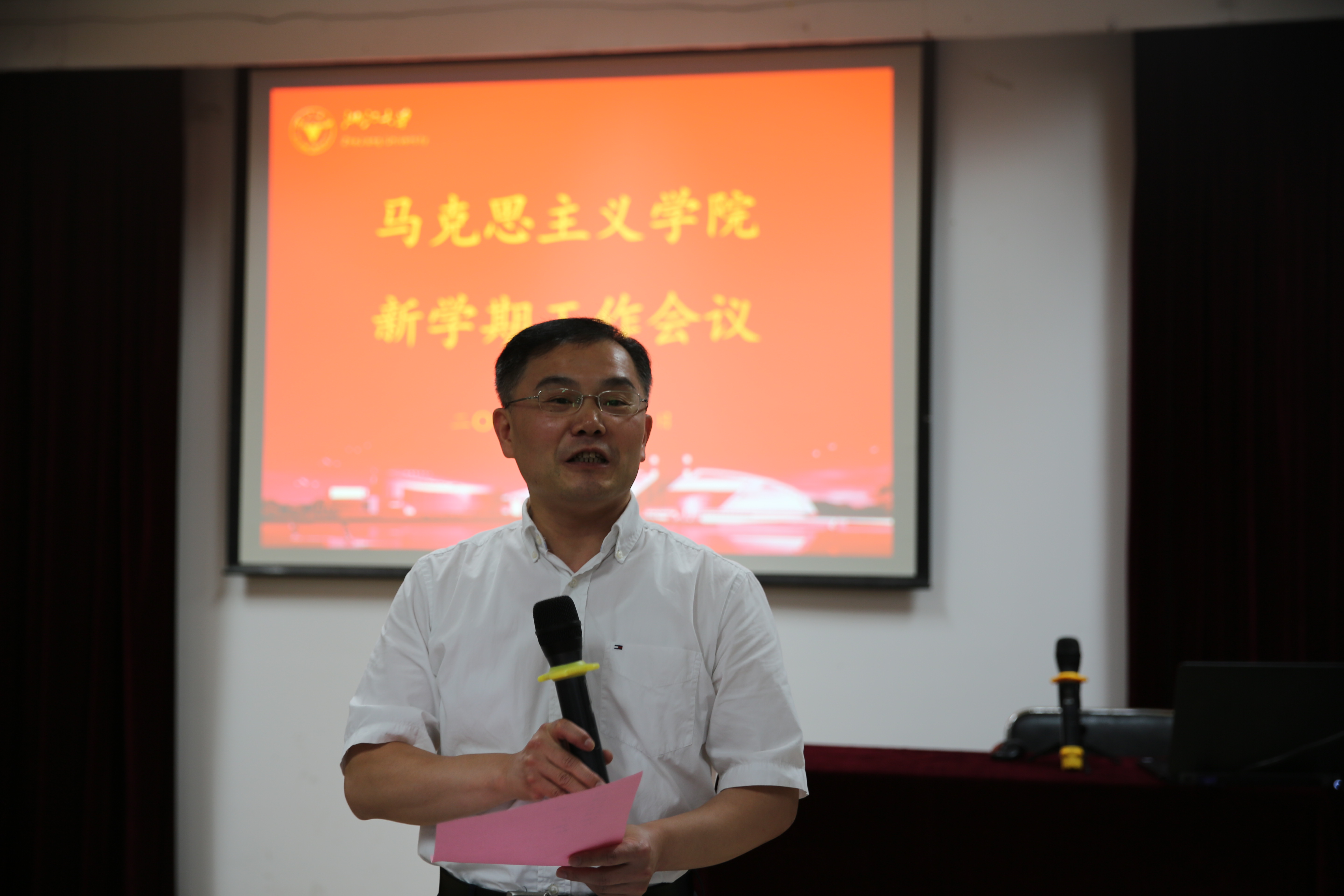 本次马克思主义学院教学工作会议成功召开,为新学年各项工作拉开了帷幕,正值新中国成立七十周年之际,中央对思想政治理论课高度关注,马克思主义学院必将团结全体师生员工,凝心聚力,攻坚克难,推动思想政治理论课建设更上一层楼!