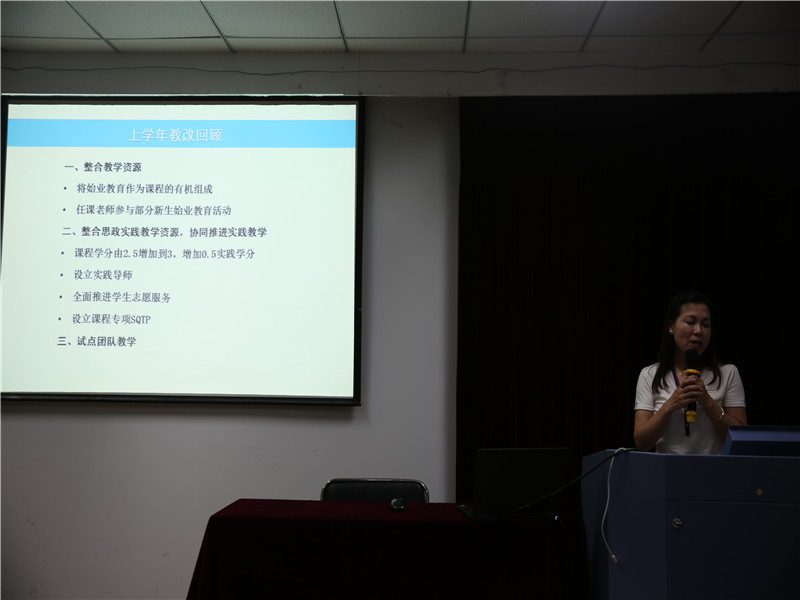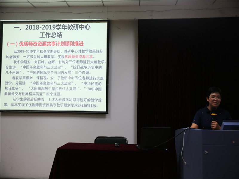 会议第二阶段,新任马克思主义基本原理概论教研中心主任吴旭平、毛泽东思想和中国特色社会主义理论体系概论教研中心主任傅夏仙、中国近现代史纲要教研中心主任董海樱、思想道德修养与法律基础教研中心主任封丽萍和研究生思政课教研中心主任刘召峰五位老师分别就本教研中心上一学年教学工作进行了小结,展现了各自课程具有特色的教学改革情况,分享教学改革过程中获得的经验,提出改革面临的困境,各门课程增进了解、相互借鉴、相互学习、共同进步。