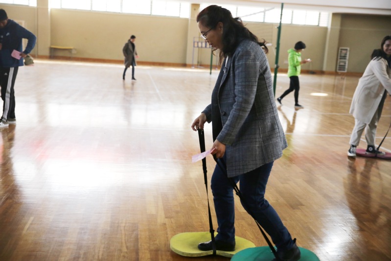 本次趣味运动会设置踢毽子、定点投篮、摸石头过河、大脚丫等个人项目。在运动场上,参加项目的老师们各个都神情专注,现场气氛紧张热烈又趣味十足,运动场上不时响起一阵阵加油呐喊的笑声与掌声。