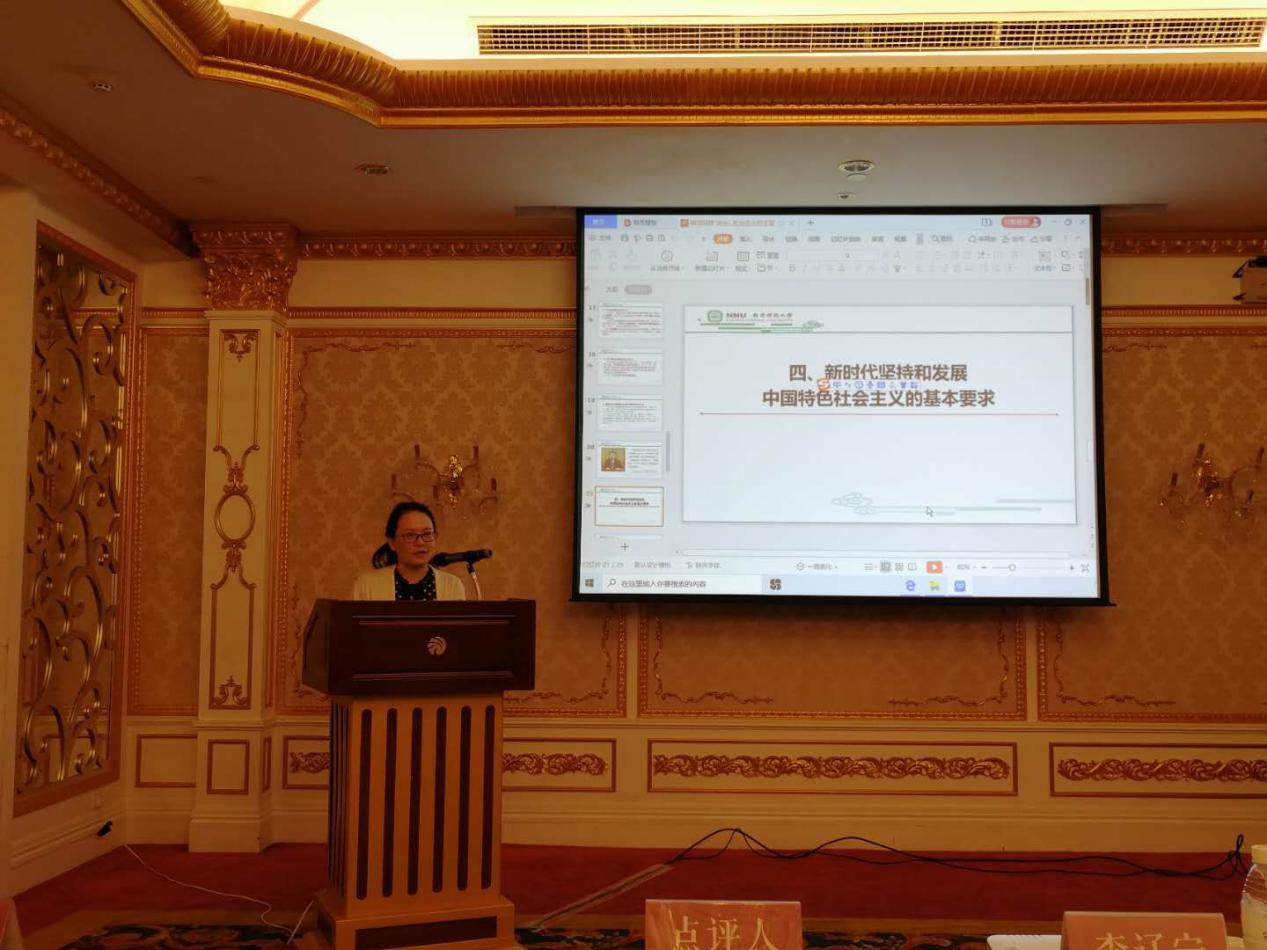 下午,习近平新时代中国特色社会主义思想课程组负责人傅夏仙老师在分会场担任特邀专家,对西南大学车放老师与南京师范大学洪光东老师的发言进行点评,她的精彩观点受到了主办方和参会老师的高度评价。“习近平新时代中国特色社会主义思想概论”课程团队桑建泉老师在分会场以“构建人类命运共同体”为主题进行了说课,受到了大家的普遍好评。