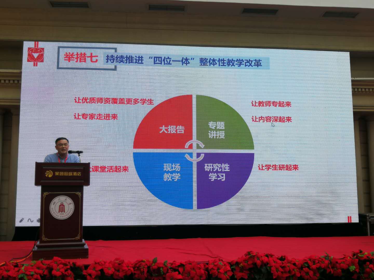 上午,李小东书记在主会场进行了主题发言。李小东书记介绍了浙江大学落实习近平总书记“3.18”讲话精神的主要举措,分享了浙江大学深入贯彻中共中央办公厅、国务院办公厅《关于深化新时代学校思想政治理论课改革创新的若干意见》和教育部党组关于《“新时代高校思想政治理论课创优行动”工作方案》的主要经验;重点介绍了浙江大学近年来在思政课教学改革方面的创新举措及成效,并介绍了“习近平新时代中国特色社会主义思想概论”课在浙大的开设情况、主要做法及特色。李小东书记的发言引发了与会代表的强烈反响。
