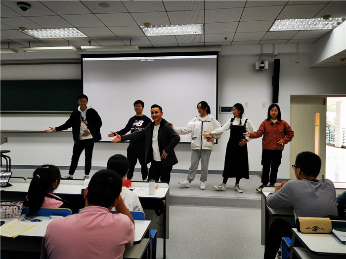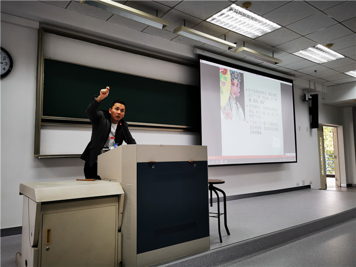 本场讲座题为《昆曲离你并不远——昆曲艺术的魅力》,曾杰老师现身说法,向同学们介绍了被誉为“百戏之母”的昆曲。曾杰老师向同学们解释了昆曲基本知识,如“生旦净末丑”的表演分工、“四功五法”的表演技巧等。讲座中,曾老师邀请五位同学上台互动,教同学们使用昆曲的肢体语言。同学们在理论学习与亲身实践中重新认识了昆曲艺术。