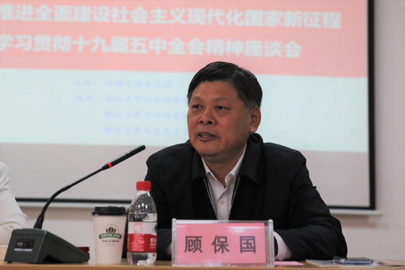 会议由社会科学研究院副院长、马克思主义学院副院长张彦教授主持,红旗文稿杂志社社长顾保国、杭州师范大学马克思主义学院院长余龙进、浙江理工大学马克思主义学院院长渠长根及浙江大学胡铭教授、张国清教授、潘士远教授、岳文泽教授、章旻副部长等校内外17名专家与会。