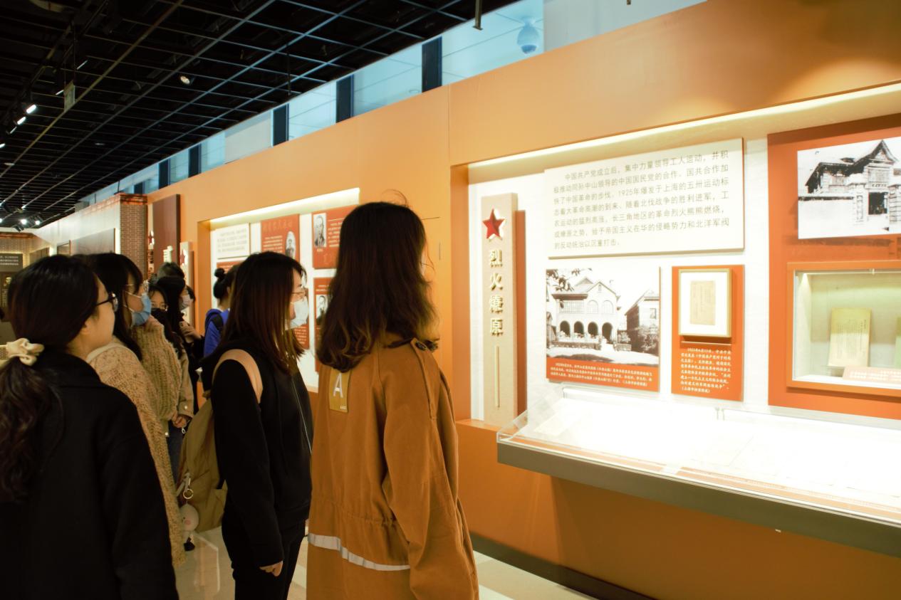 会议第三项是现场实践教学活动。硕士生第二党支部全体党员在书记桑老师的带领下,共同前往浙江省档案馆参观“建党百年 初心如磐——长三角红色档案珍品展”。建党百年来,在党的领导下,长三角地区人民谱写了一首首可歌可泣的英雄诗篇。在馆内讲解员的解说和引导下,党员们依次有序参观展览。本次展览共有“开天辟地宏图起”“革命洪流风云咤”“中流砥柱御外侮”“天翻地覆慨而慷”四个部分,生动形象地展示了中国共产党的光辉历史。党员们纷纷表示,通过此次活动,深切感受到中国共产党成长历程的艰辛不易。