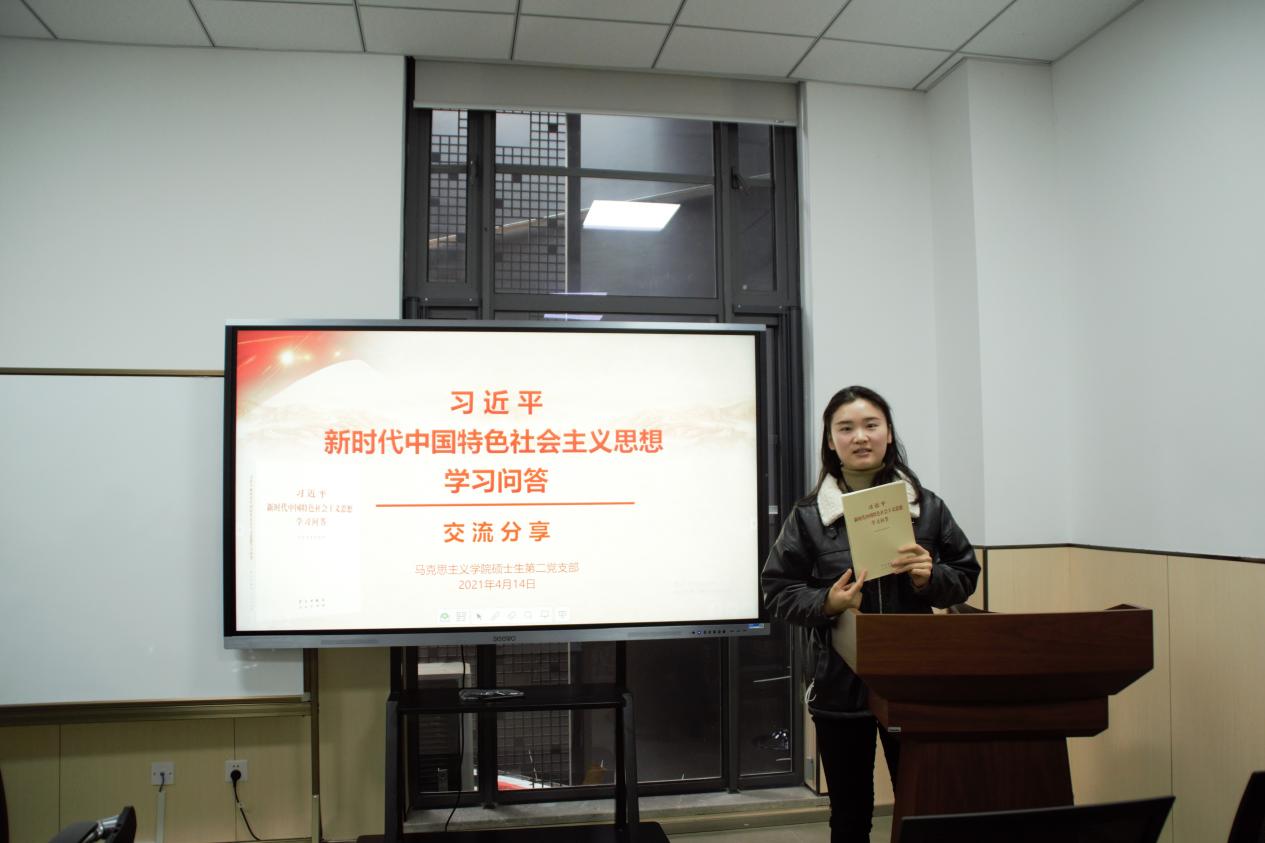 为深入掌握习近平新时代中国特色社会主义思想精髓,4月11日中午,马克思主义学院硕士生第二党支部在马院大楼107教室开展“学习新思想,开启新征程”主题党日活动。会议由支部副书记马甜甜主持,全体党员参加此次活动。