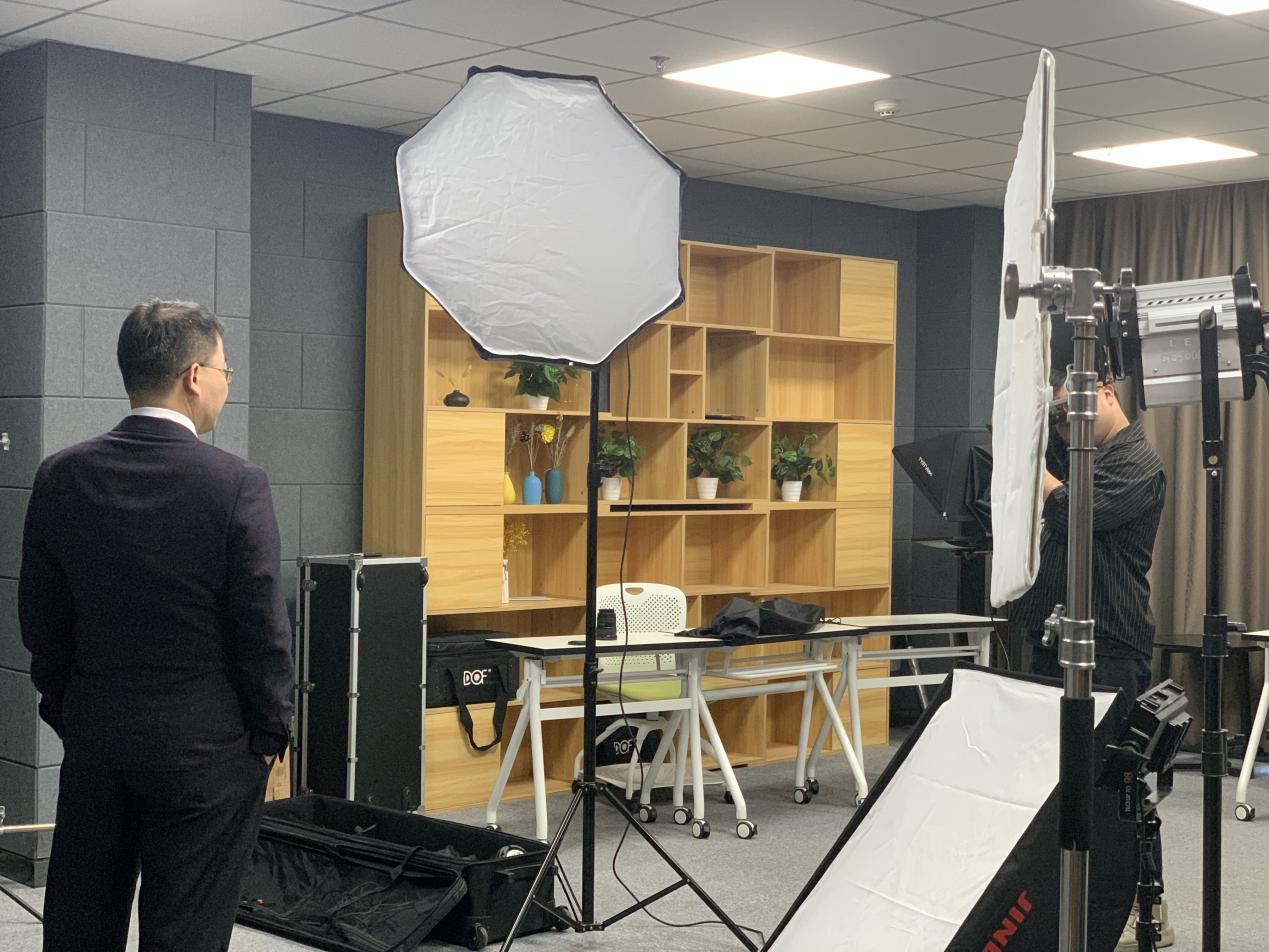 以镜为媒,摄像镜头记录下了教职工的美丽瞬间。学院老师们纷纷参与,气氛热烈。卷发、扑粉画眉,再换上准备好的正装,经过化妆师们的精心装扮,老师们容光焕发,笑意盈盈,成为一道亮丽的风景。