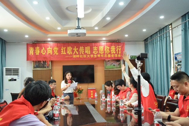 为热烈庆祝建党100周年,进一步增强党员的爱党爱国热情,丰富支部主题党日活动形式,5月28日下午,马克思主义学院硕士生第二党支部和共建的“概论”教研中心党支部一起前往湖畔社区,共同参加该社区“青春心向党、红歌大传唱、志愿你我行”大学生青年志愿者建党100周年志愿服务活动。此次活动由硕士生第二党支部副书记马甜甜主持,概论教研中心党支部书记林小芳及其他教师党员出席此次活动。