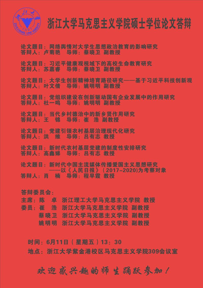 2021年6月硕士学位答辩通知