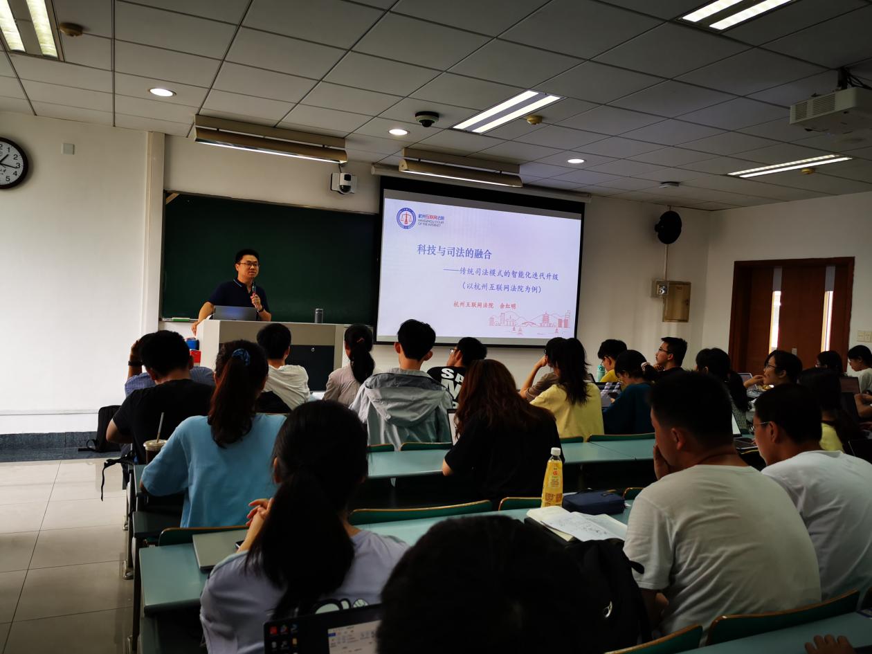 2021年6月16日下午,杭州互联网法院信息化总工程师余红明先生来到梁清华老师的法学基础课堂,为大家带来《科技与司法的融合——传统司法模式的智能化迭代升级》专题讲座。讲座内容丰富,形式多样,同学们收获颇多。