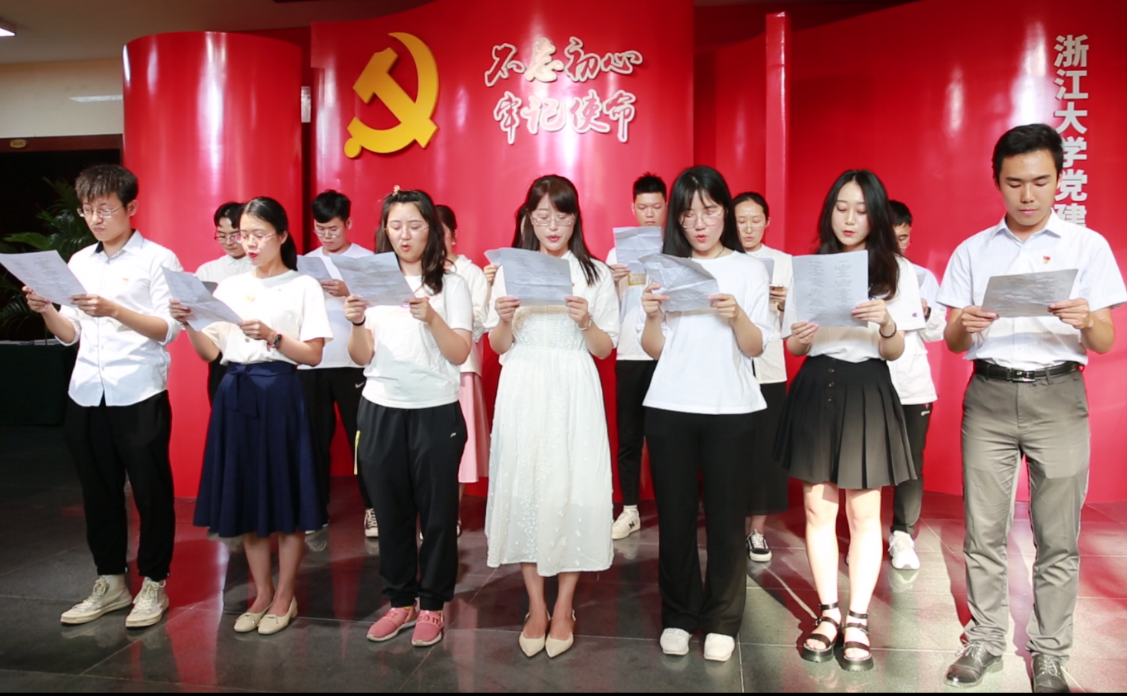 随后,四个支部集体前往浙江大学党建馆,在鲜红的党旗下,陈海滨同志带领全体党员重温入党誓词,党员们的宣誓声铿锵有力、气壮山河。重温誓词能让党员同志们再一次感受到作为党员带给自己的责任感和使命感,并始终牢记为人民服务的宗旨,以实际行动去恪守对党的承诺。