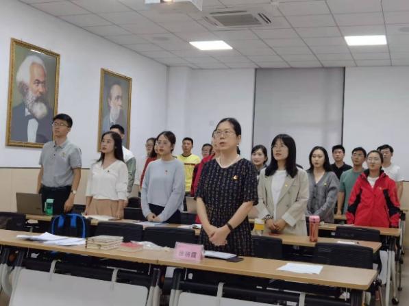 会议在雄壮的国歌声中拉开序幕。首先,徐晓霞老师发表了语重心长、催人奋进的指导讲话,她对加入支部的新同志们表示欢迎,并对学院博士生整体水平的不断提高感到骄傲。今年是学院对研究生党支部调整后的第一年,新支部展现出了良好的精神面貌,这归功于上届支委们的认真工作;接下来的支部工作,徐老师向全体同志提出了殷切希望:浙大马院要奋起追赶与全国顶尖高校马院的差距,需要大家坚定对马理论学科的学术认同与学术自信,端正学习态度,提升理论水平;更重要的是,大家要积极主动参加学校乃至全国高校的博士生理论宣讲团,在这一过程中提升自己思政课的宣讲水平,既为未来的发展打下基础,也在更高舞台上唱响浙大马院声音、展现浙大马院身影、发挥党员先锋模范作用。