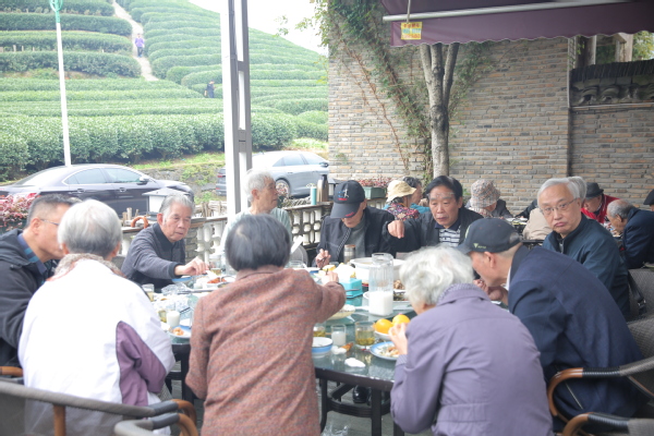中午时分,一行人在龙坞茶村茶舍喝茶聚餐,相谈甚欢,度过了愉快又难忘的美好时光。