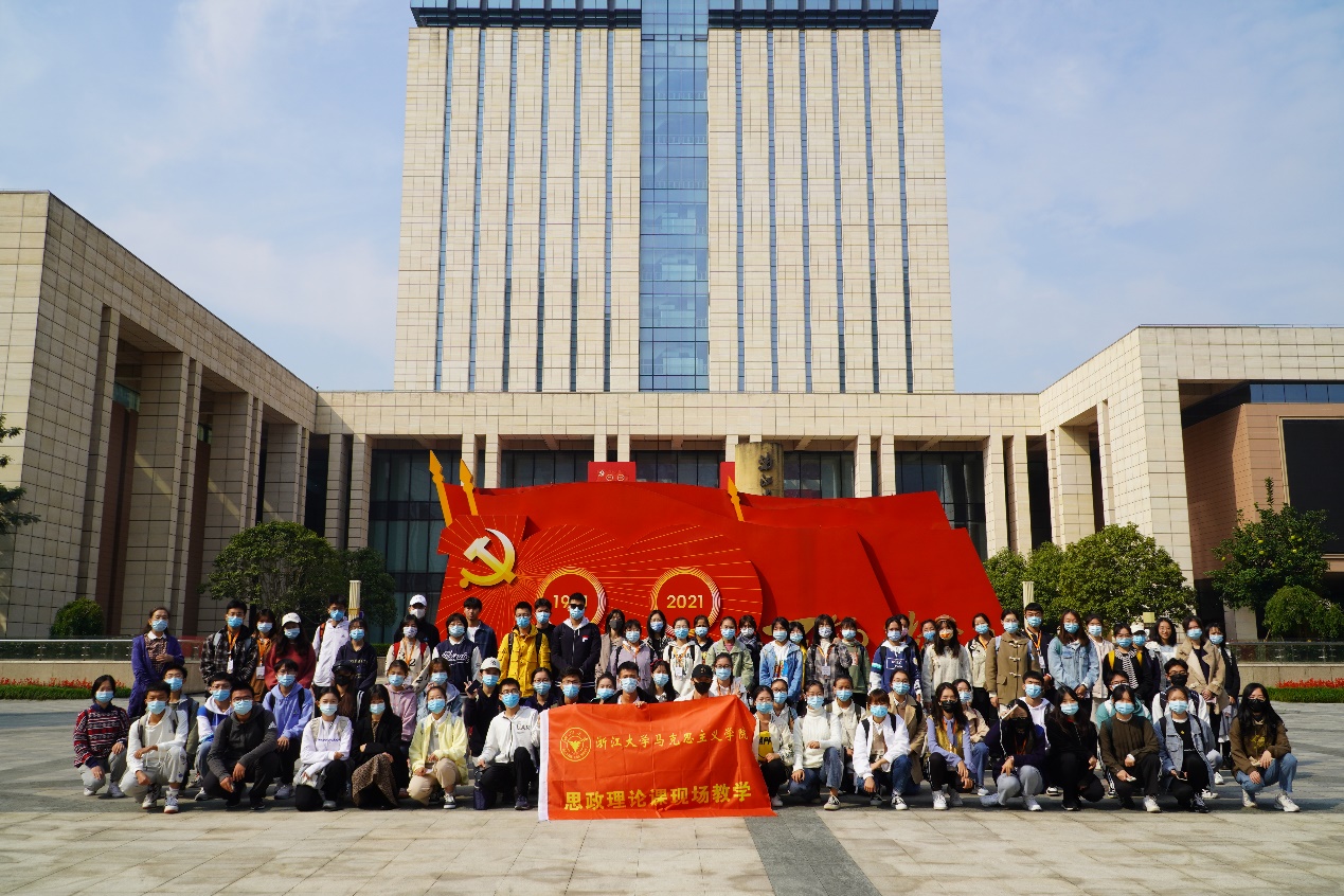 2021年10月26日上午,浙江大学中国近现代史纲要345班全体同学在程早霞老师的带领下前往浙江省档案馆进行参观学习。本次活动在前期精心的策划并做好了切实的保障下得以顺利进行。在上午9点45分,同学们搭乘两辆大巴车从浙江大学东门出发,于10点顺利到达浙江省档案馆,正式开始了我们的思想政治理论课的实地学习之旅。本次参观的主要目的是进行党史学习教育。适逢中国共产党成立一百周年,浙江省档案馆特此举办了庆祝中国共产党成立100周年大型展览。展览分成四个篇章,分别是:“大潮起东方 红色根脉育之江”“春潮竞奔流 筚路蓝缕创基业”“弄潮涛头立 思想萌发引航向”“盛潮更扬帆 ‘重要窗口’开新局”。生动展示了我们党和老一辈无产阶级革命家为人民谋幸福、为民族谋复兴的初心和使命,清晰的再现了浙江在中国共产党的带领下走出苦难、艰难抗争、曲折前进、走向辉煌的伟大历程。此次展览综合运用图片、视频、档案文献、文字、模型、实物、多媒体、裸眼3D等展陈方式,突出红船味、浙江味,突出体验感、互动性,科技性。高质量、高密度的红色档案宣传系列活动,为同学们进行党史学习教育营造了浓厚的红色氛围、提供了生动红色教材。