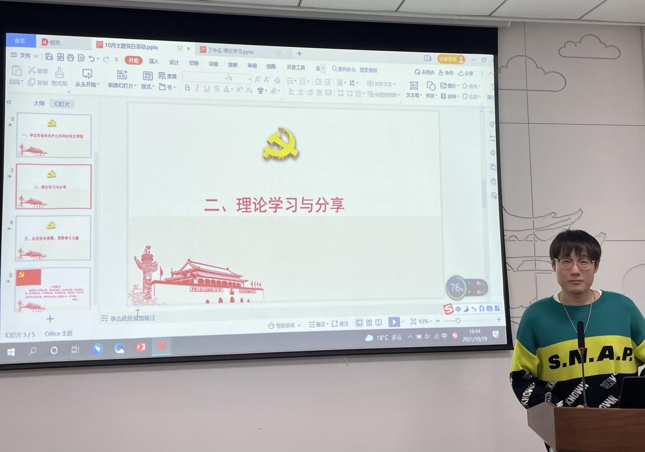 随后,于雯美、孙宗岭、丁中正三位同志带领与会党员进行了10月份的理论学习。