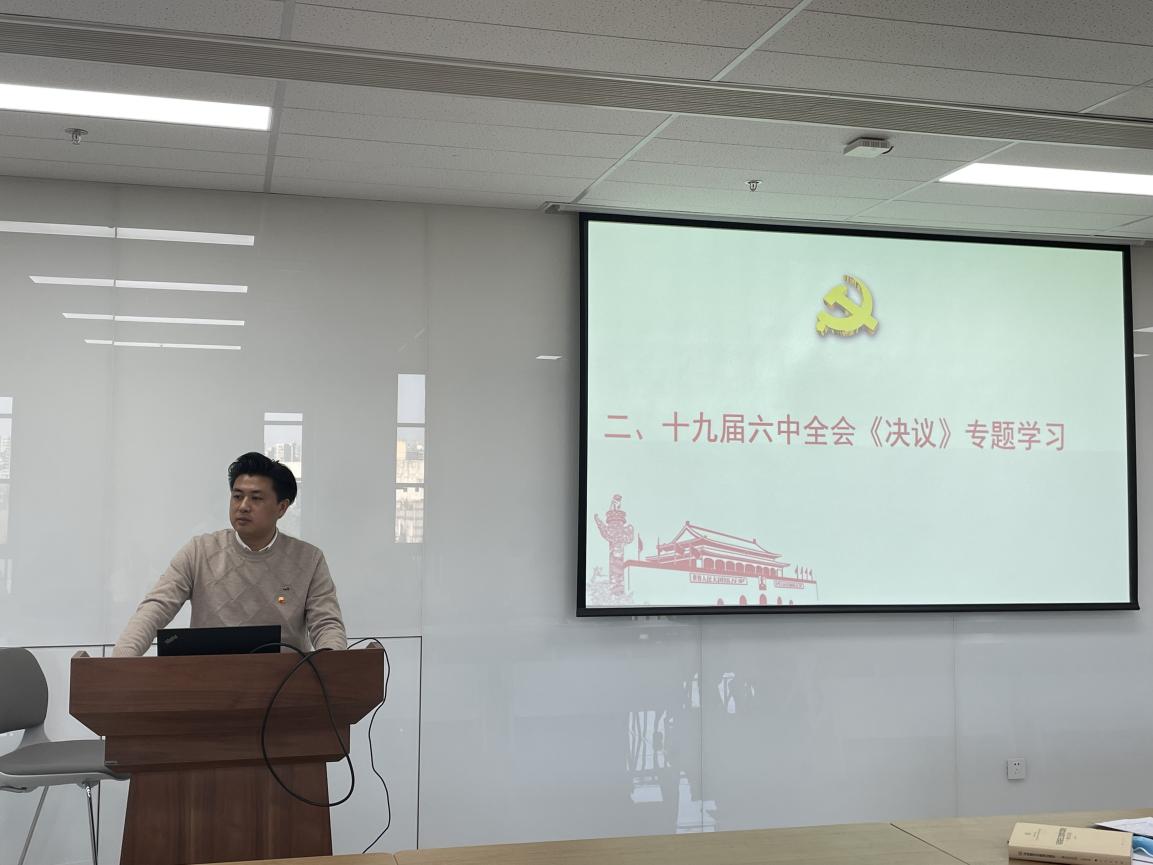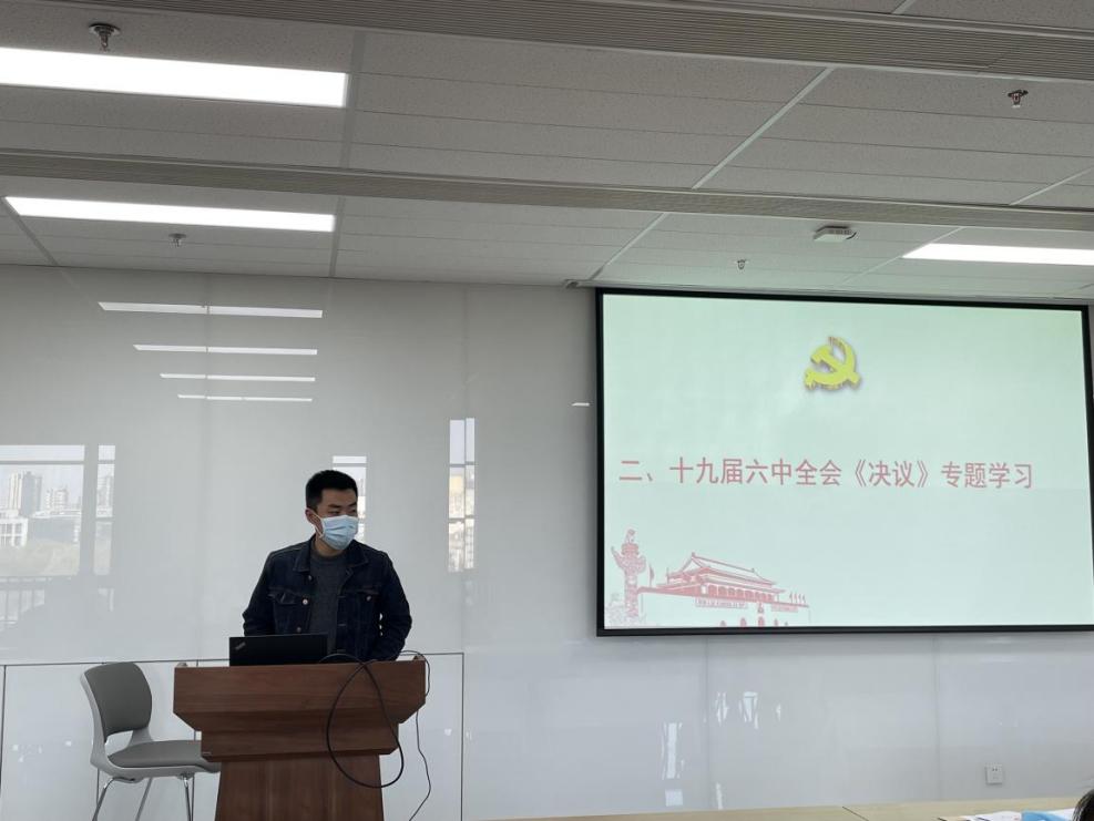 王珊同志分享了学习十九届六中全会《决议》的学习心得。王珊同志从站在历史的高度、站在政治的高度、站在能力的高度概括了学习《决议》的必要性,带领与会党员梳理了《决议》的重要内容。