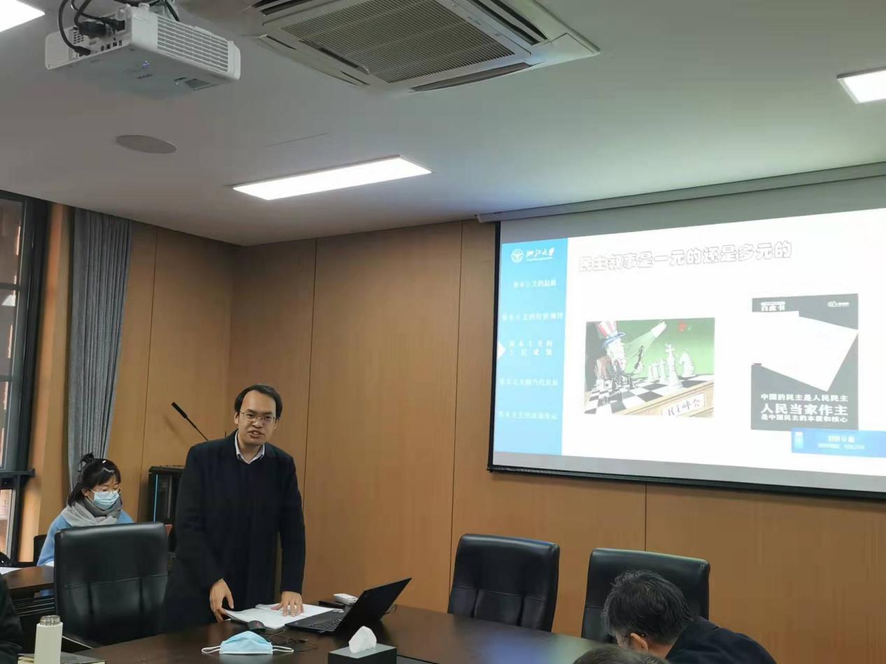 2021年12月21日下午,浙江大学马克思主义学院第五期教师教学发展论坛线下开讲,本次活动主题为“青年教师讲课深度交流活动”,马克思主义学院青年教师田亚教师以《民主叙事是一元的还是多元的?》为主题展开说课和讲课。马克思主义学院李小东书记主持本次论坛,董海樱、张立程、丁堡骏和高永作为点评专家参与此次活动。马克思主义学院省级青年教师教学技能竞赛获奖者赵坤老师和尤云弟老师以及多位青年教师也参与本次活动。