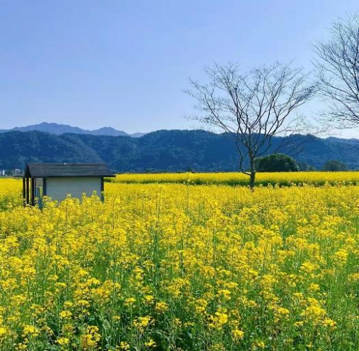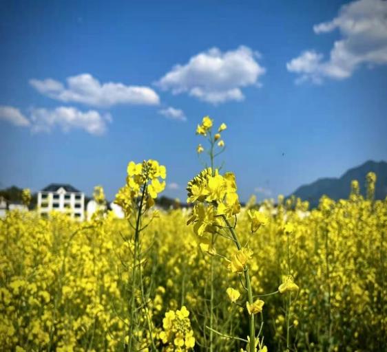 步入“下涯花海”的乡间田埂,千亩花田被金黄的油菜花所覆盖,小小的四单瓣包裹着短短的花蕊,朵朵密集,簇簇相拥,连成片,汇成海,在春天阳光的映照下,金黄耀眼的油菜花与美丽乡村里白墙黛瓦的农家院落,远处一望无垠的葱绿和远山交相辉映,美如画卷。