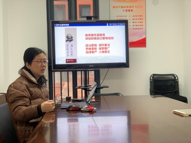 首先,徐晓霞老师讲述了为什么要学习党史党章。徐老师说:“教育者先受教育,讲信仰者自己要有信仰。”告诫我们要主动了解党史党章,自觉接受教育,坚定自己的信仰。