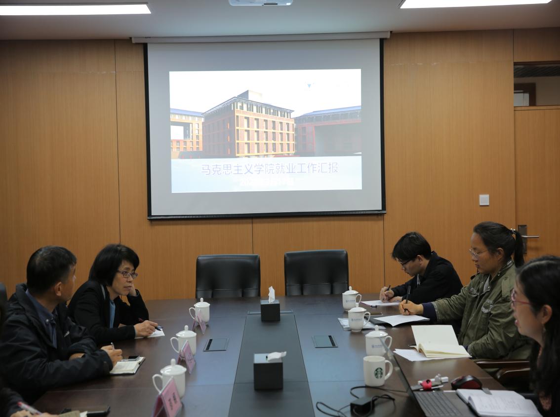 为更好促进就业工作,提高就业指导服务水平,3月17日下午,浙江大学就业指导与服务中心副主任邵頔老师、朱连忠老师、林芝老师、应好老师一行到马克思主义学院调研、指导就业工作。马克思主义学院党委副书记徐晓霞老师、李亚楠老师及部分学生代表参加此次调研座谈会。会议由徐晓霞老师主持。