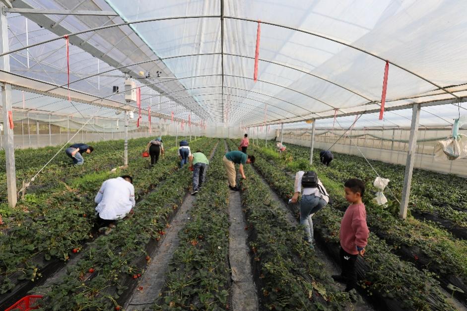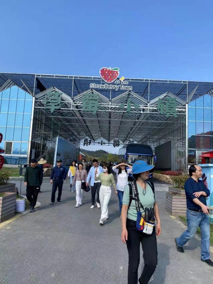 下午,我们来到建德草莓研究院、草莓小镇。经过简单走访,我们了解了草莓小镇的相关共富举措,草莓小镇振兴给当地居民带来的切实实惠全都写在了莓农的脸上。老师们饶有兴趣地提着小篮子在草莓园中穿梭,采摘品尝,香甜鲜美的草莓既饱了口福,又让大家体验了田园乐趣!