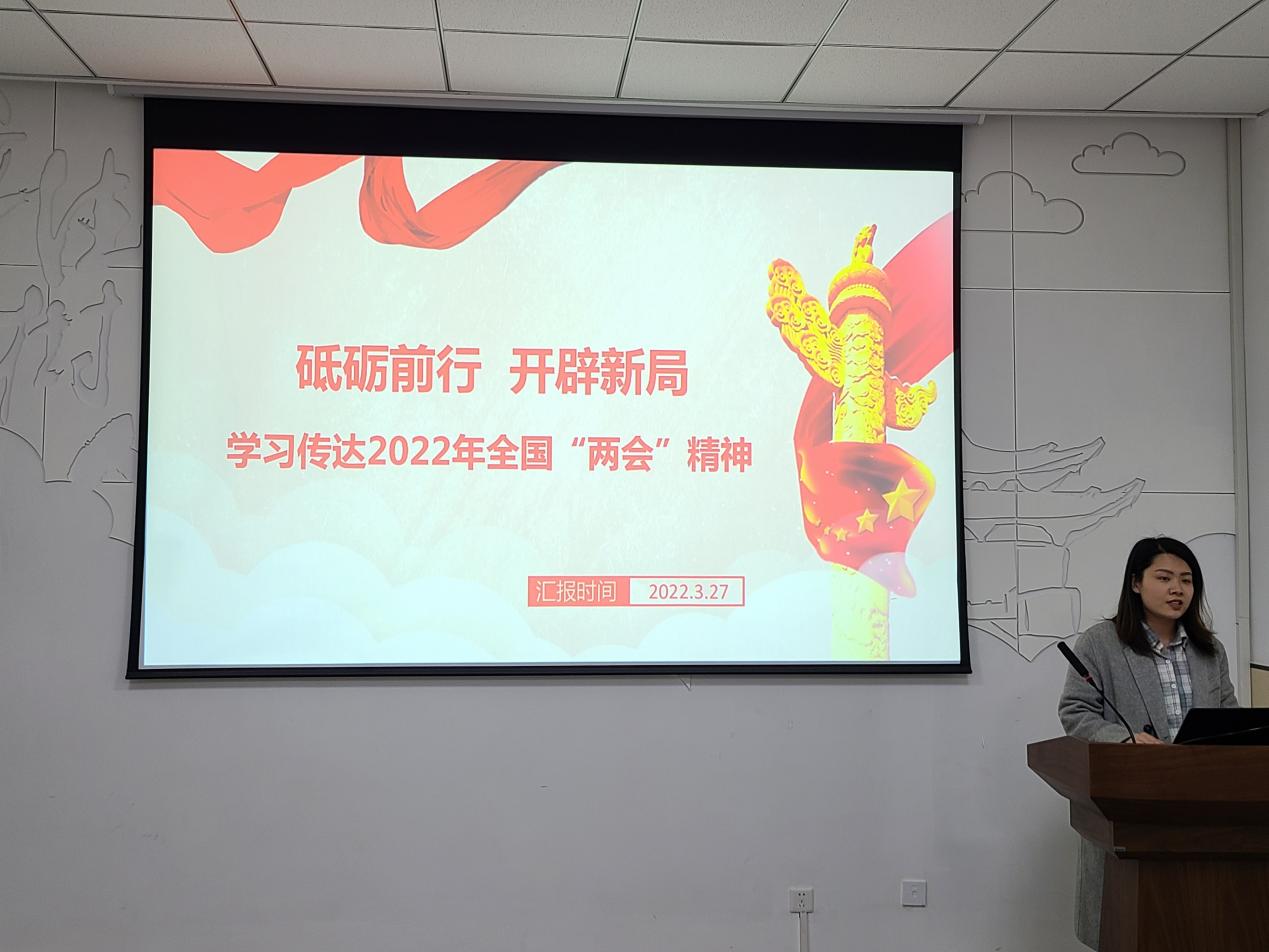 支部大会的第二项议程为理论学习。张馨戈同志以“砥砺前行 开辟新局”为题带领支部全体共同学习2022年全国“两会”精神。她指出:纲举才能目张,明道才能优术。习近平总书记在2022年全国“两会”上把握新的时代方位,观大势、谋全局、明方向,回顾新时代党和人民奋进历程,提出了“五个有利条件”“五个必由之路”“树立大食物观”“统筹山水林田湖草沙系统治理”四个重大论断。