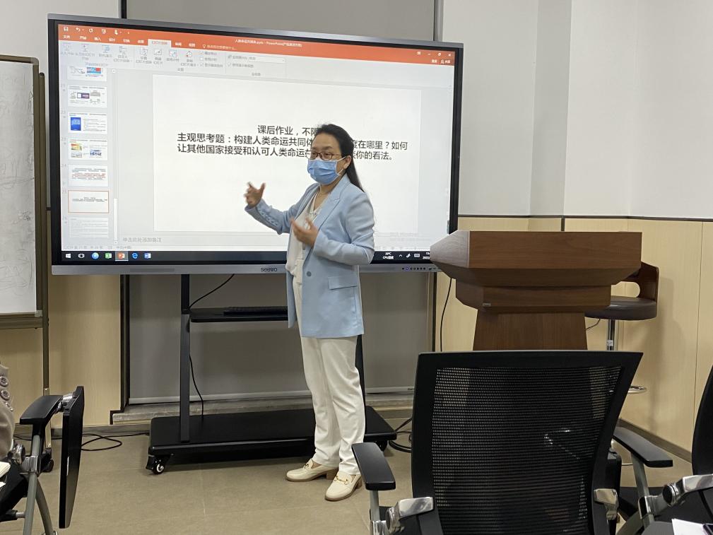 陈铁峰和李曼玉两位同学分别以《构建人类命运共同体展现中国大国担当》和《绿水青山就是金山银山》为题进行了10分钟的教学试讲。针对两位同学的试讲表现,傅老师分别从导入、互动、提问、小结、思考题设置等方面对学生试讲中产生的问题作出具体分析,并提出了具有针对性的修改建议,为学生日后试讲质量的提高提供了科学的方法论指导。