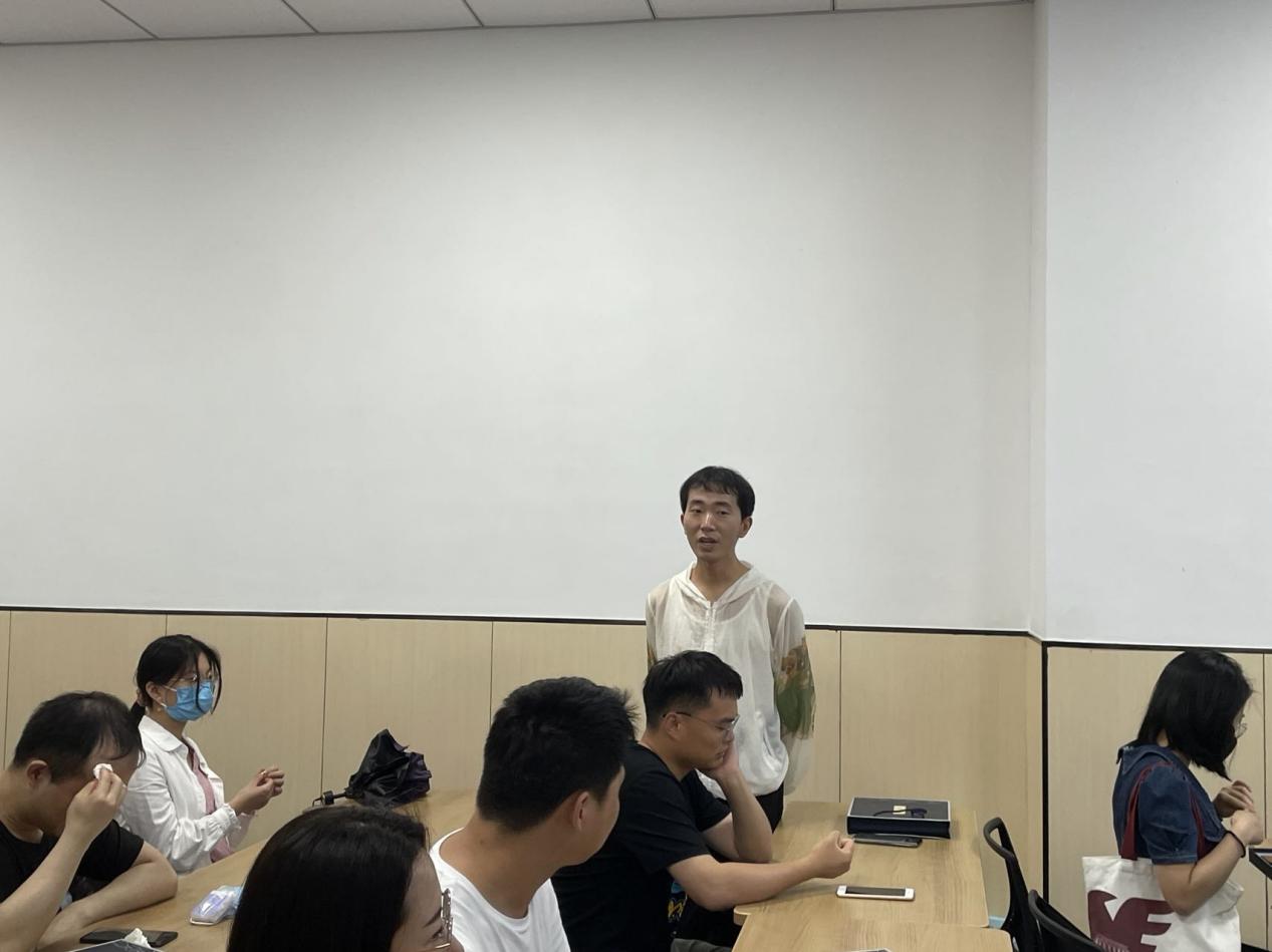 会议第三项议程是欢送毕业生党员。盛夏,2019级博士生临近毕业,博士生第二党支部为毕业党员准备了精美的纪念礼物。随后,毕业党员为学弟学妹们送上了寄语。他们首先回顾了三年间在支部中学习与生活的点点滴滴;其次,围绕心态调整、毕业论文撰写、科研历程等等展开了经验的分享。佘梅溪同志希望学弟学妹们能在学术上找到自己的兴趣,并表示只要有耐心就一定会做到最好的程度。