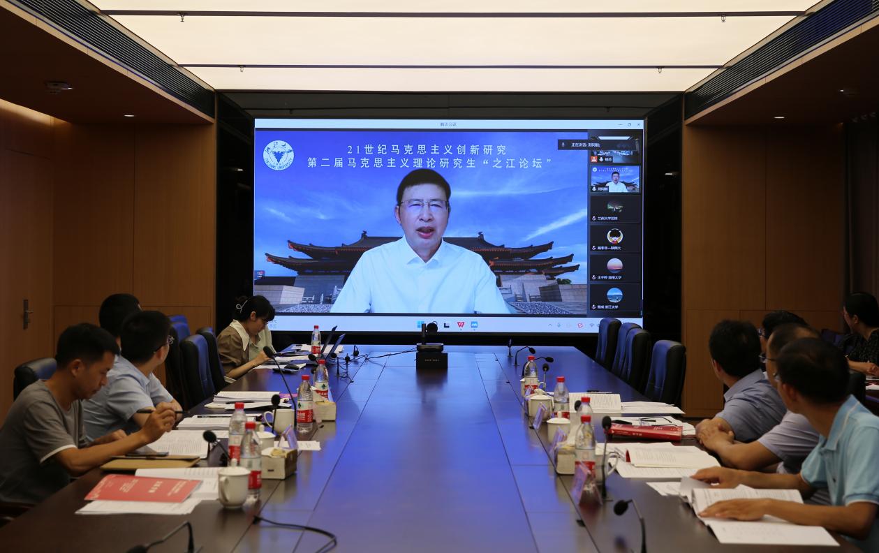 7月2日,由浙江大学马克思主义学院主办,《浙江社会科学》、《浙江学刊》、《治理研究》编辑部协办的“21世纪马克思主义创新研究——第二届马克思主义理论研究生‘之江论坛’”顺利召开。来自北京大学、清华大学、中国人民大学、复旦大学、南京大学、华东师范大学等多所高校和科研院所的三十余名研究生受邀线上参与本次论坛。浙江大学马克思主义学院刘同舫教授代表主办方致辞,《浙江学刊》田明孝副主编,《浙江社会科学》戴道昆编辑,《治理研究》王宁编辑,浙江大学马克思主义学院代玉启教授、刘召峰教授、陈宝胜教授、吴旭平副教授、付文军副教授与会并作为评审专家参与评议。