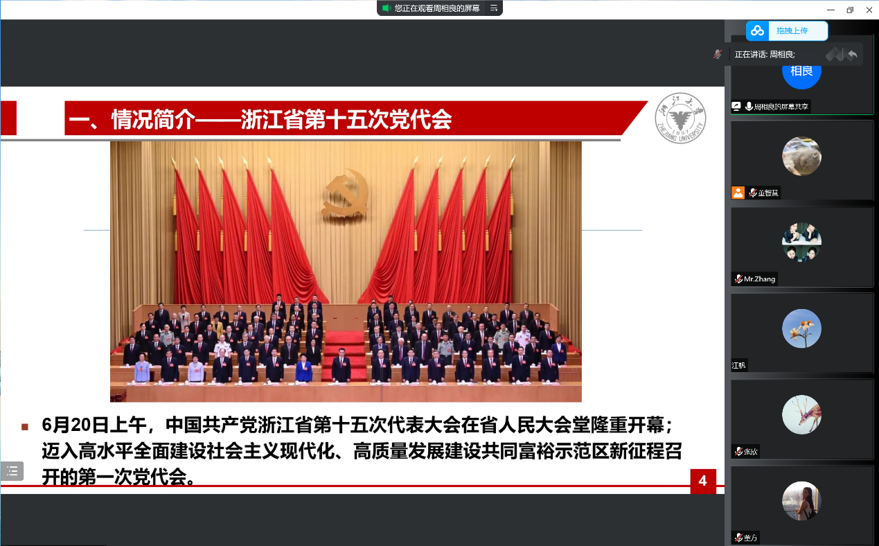 7月30日和8月23日,马克思主义学院博士生第一党支部以线上会议的形式举行了“省十五次党代会精神”学习会,分别由董智慧、周相良同志作主题报告,会议由支部副书记董智慧主持。
