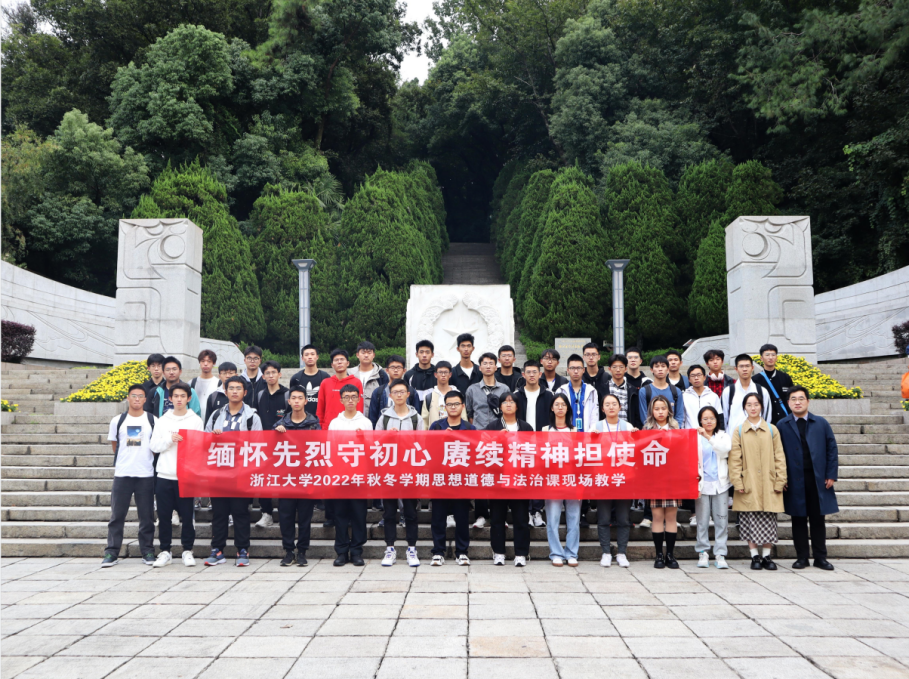 金秋时节,云居山上。为缅怀先烈传承红色基因,迎接党的二十大召开,10月14日下午,浙江大学思想道德与法治课金立乔老师与40位同学们来到浙江省革命烈士纪念馆,结合课程第二章“追求远大理想,坚定崇高信念”主题,开展祭扫烈士、现场教学活动,向革命先辈们表达崇高的敬意。