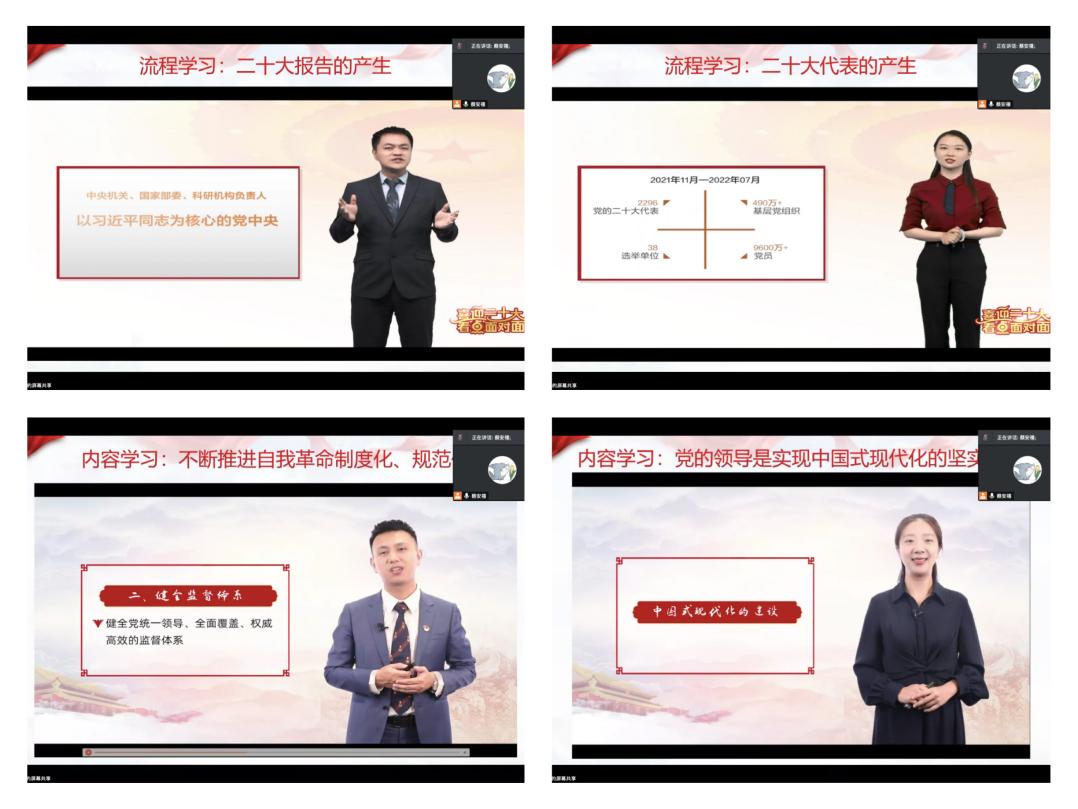 李慧同志从“以中国式现代化全面推进中华民族伟大复兴”的角度分享感悟,她认为:“党的二十大是在新的历史坐标上召开的党与国家的重要大会,提出‘以中国式现代化全面推进中华民族伟大复兴’。中国式现代化是具有中国特色的现代化道路,只有党的领导才能为其提供坚强保障。这一坚强保障体现在方向保障、路径保障与力量保障,只有坚持党的领导才能确保中国式现代化沿着社会主义正确方向前进,才能确立符合中国国情的路线、方针、政策,才能充分地凝聚建设力量。作为青年党员,站在新的历史坐标处,我们要牢记‘三个务必’为我们锚定的奋斗要求,坚定初心使命、戒骄戒躁、顽强斗争,为第二个百年奋斗目标的达成增添青春力量。”