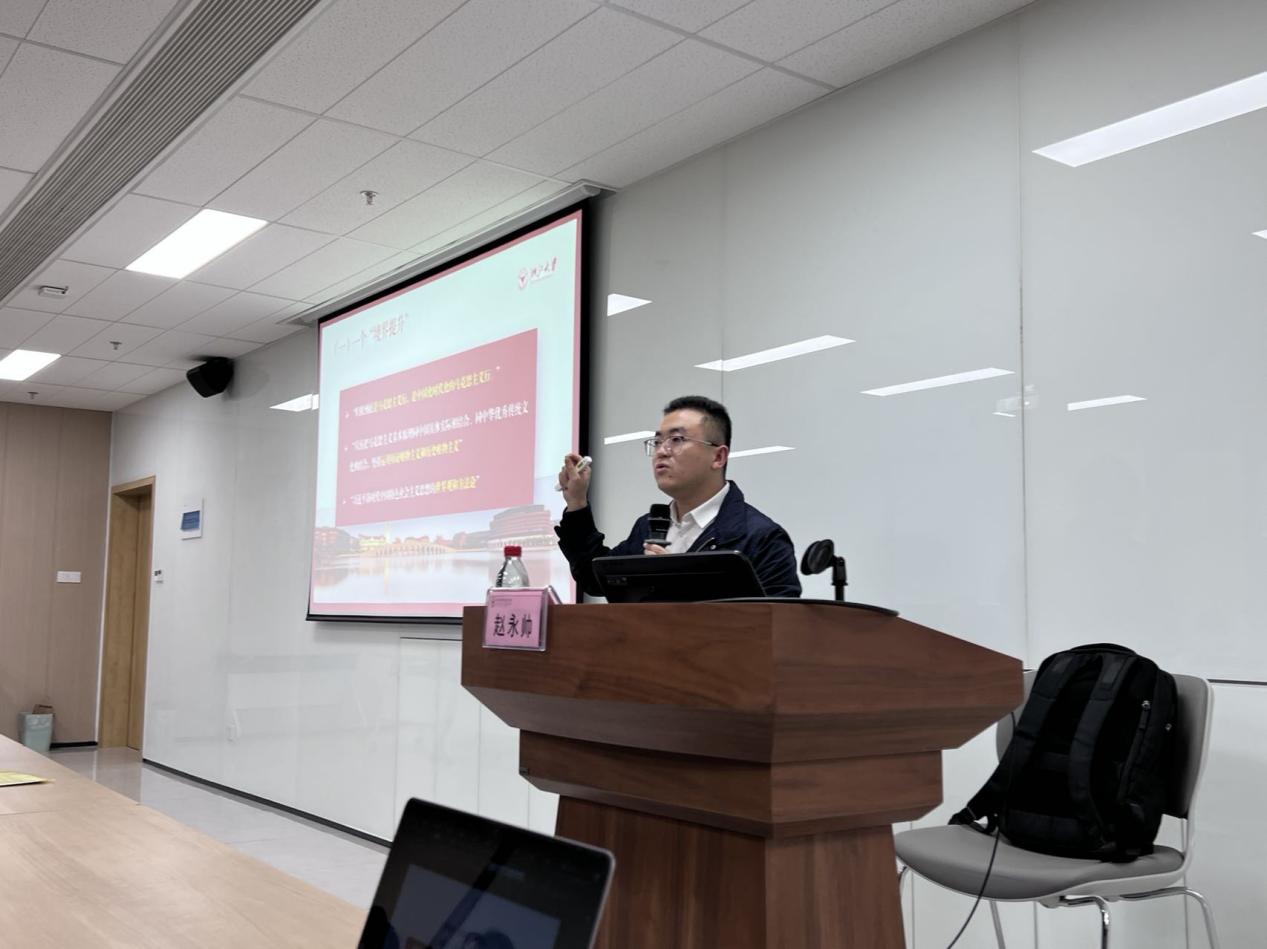 10月24日晚上,马克思主义学院学生讲师团党的二十大报告交流学习会在紫金港校区西区成均苑3幢521室顺利召开。本次活动由马克思主义学院讲师、浙江大学中国特色社会主义研究中心研究员赵永帅博士主讲。