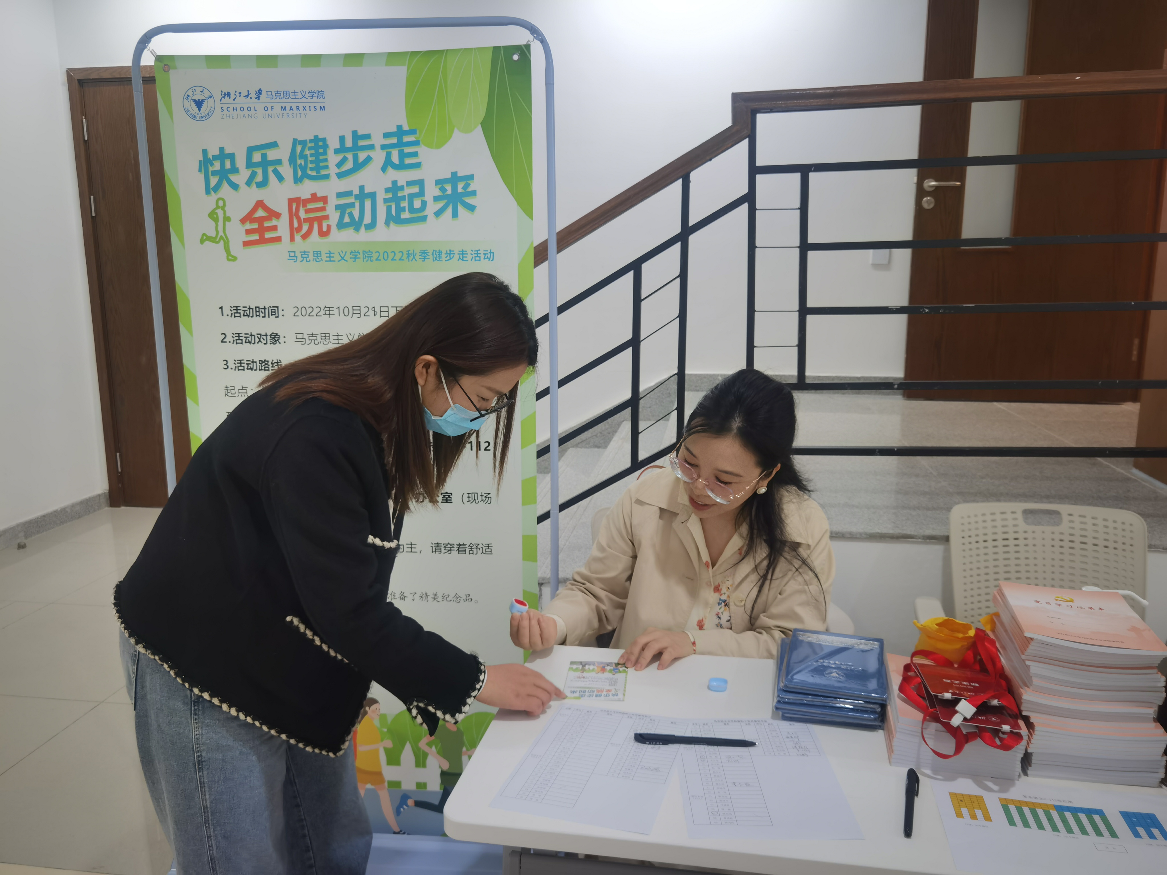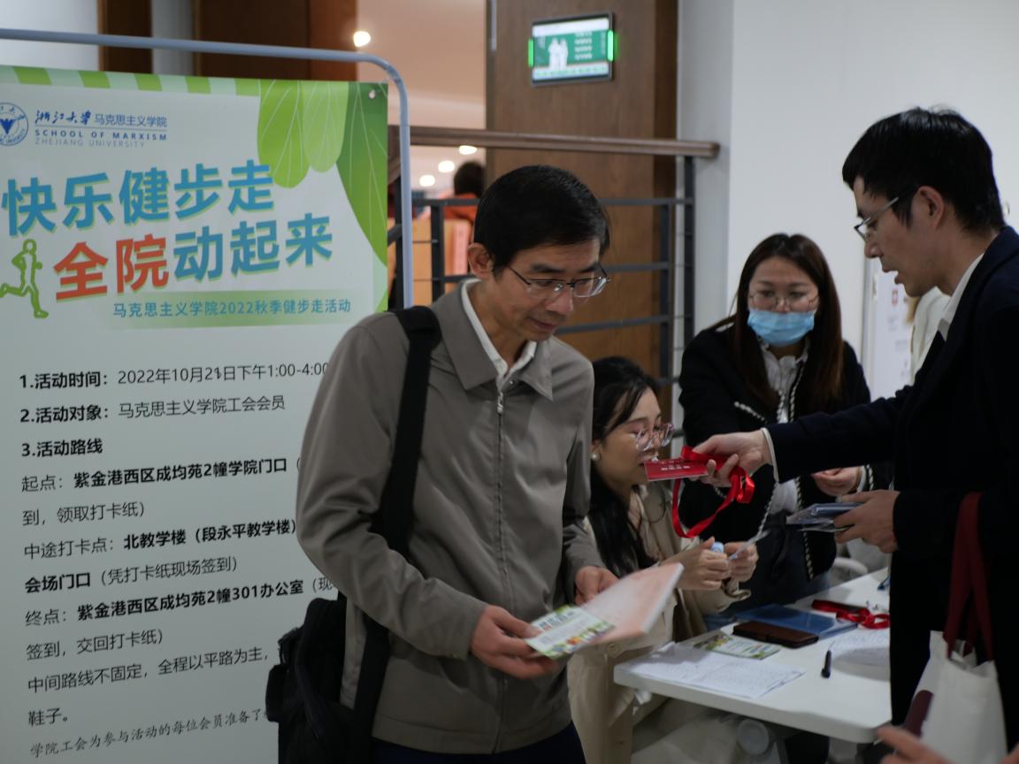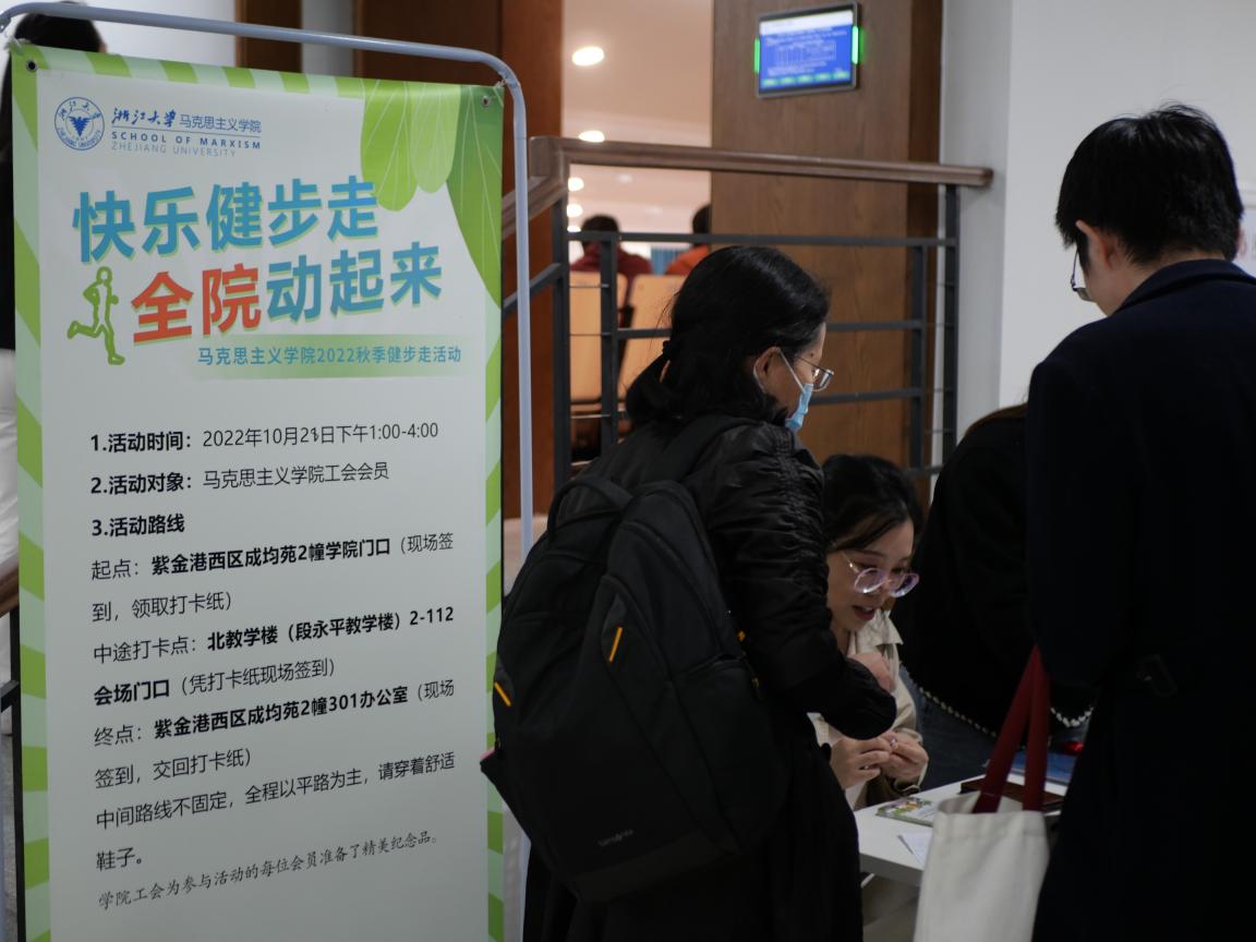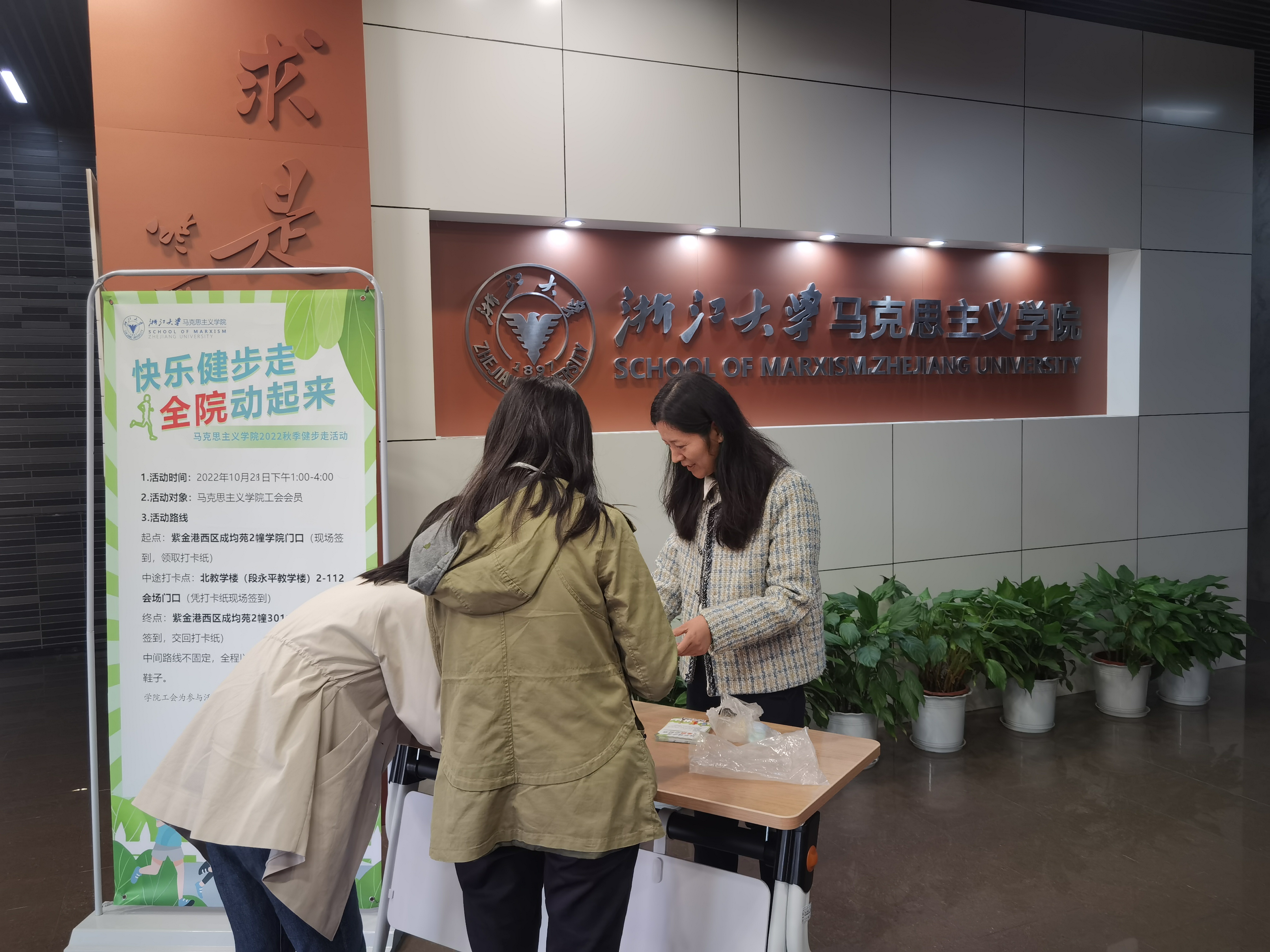 10月21日下午12点45分,“快乐健步走 全院动起来”活动正式拉开。健步走的起点设在马克思主义学院大楼一楼大厅,中途打卡点设在北区段永平教学楼2号楼,最后在回到起点。