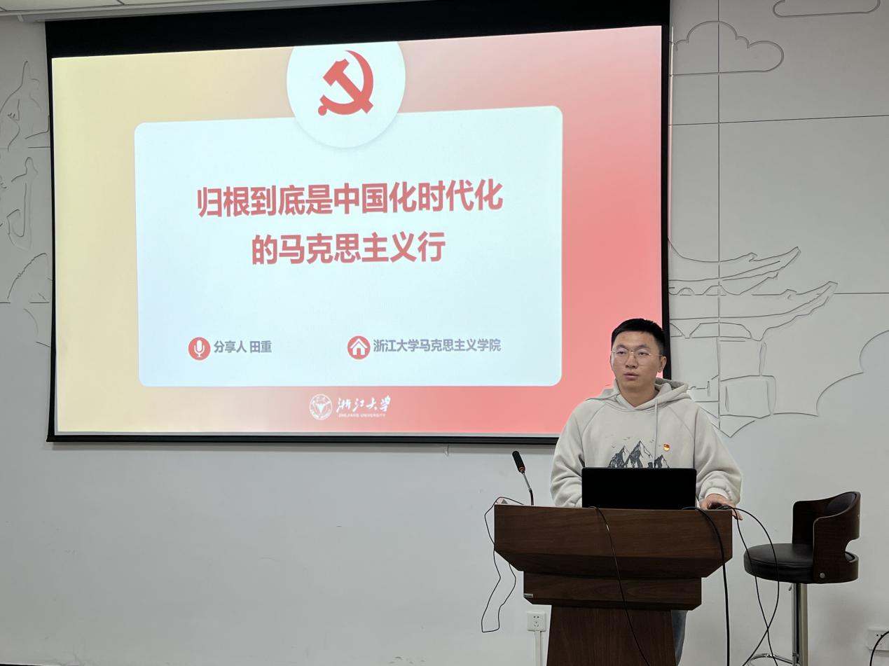 博士生第二党支部田重同志围绕“归根到底是中国化时代化的马克思主义行”分享学习感悟。他指出,中国共产党能、中国特色社会主义好、马克思主义行三者内在统一。展望未来,我们必须坚持以马克思主义理论为指导,以守马克思主义之争;继续答好中国之问、世界之问、人民之问、时代之问,以创当代中国马克思主义之新;推进新时代伟大实践,以用当代中国马克思主义之真。