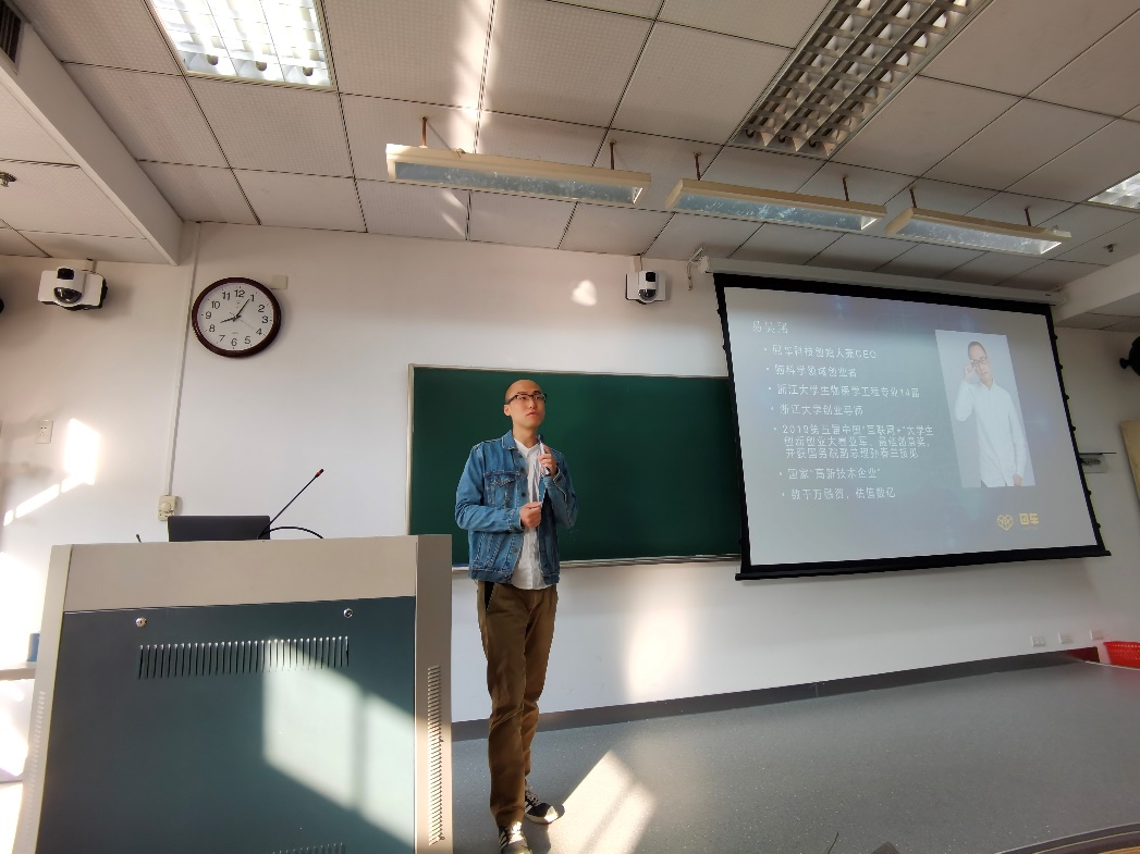 2022年11月7日,杭州回车电子科技有限公司CEO易昊翔走进《思想道德与法治》课堂,为同学们带来《改革创新推动时代发展》专题课程,让同学们在课堂上进一步领悟中国精神内涵,鼓励同学们在改革创新的道路上踔厉奋发、砥砺前行。
