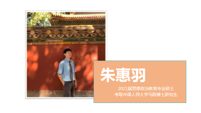 2021届思想政治教育专业朱惠羽,分享了他考取中国人民大学马克思主义学院博士的经验。一是抉择和取舍:选择读博可能是因为跟风追逐、学历崇拜、前景光明,也可能是因为热爱学术,不同的人选择读博的原因不尽相同,但追逐所爱、奔赴理想总比为了读博而读博,被动接受读博效果要好得多。二是流程和节点:了解目标院校的报考条件、整体流程、学科矩阵以及名额情况,综合考虑院校专业性、意向专业性、未来职业选择等因素进行院校选择,敢于报考。三是准备和冲刺:初审材料的准备一定要注意文件命名格式的规范化和统一化。无论是笔试还是面试,都要注意细节、保持专注。此外,在备考方面,还要注重经典原著的学习,把握其框架结构,以问题为中心,以论断为基点;还要熟知时事政治的新提法新表述;英语学习要服务于经典原著和时事政治,以关键词带动长句子;专业学习上要聚焦基本原理梳理,把握学科研究前沿。最后,朱惠羽学长勉励大家谦虚学、踏实学、创新学,尽可能多地搜集和占有文献,回应学界的理论争鸣,努力追求文献创新、观点创新和方法创新。