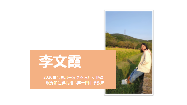 2020届马克思主义基本原理专业硕士李文霞,围绕四个关键词展开分享。一是“选择”,选择是一道没有标准答案的必答题,在这个过程中,可以多收集相关信息,寻找到适合自己的生活方式并且轻装前行。二是“热爱”,热爱是一种积极进取的人生态度,是一条提升人生价值的“捷径”,也是一生值得坚守的事业;三是“积淀”,“积淀”要求马克思主义理论专业的同学掌握教学技巧和智慧,发挥思政课教师独有的特色,达到站得住讲台、站得稳讲台、站得好讲台的效果;四是“笃行”,“笃行”就是要保有教书育人的初心、保留简单纯粹的童真以及保持与时代同频共振的活力。