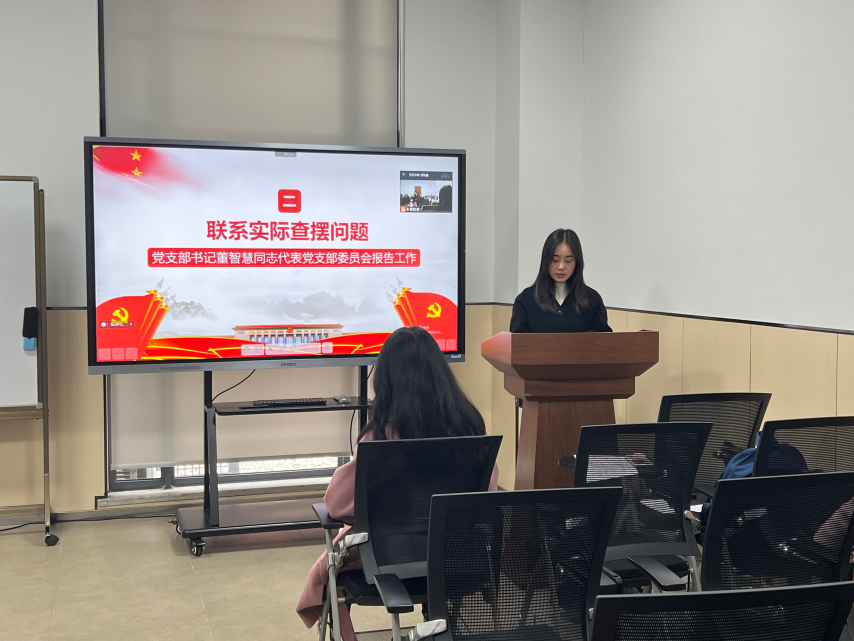 支部书记董智慧同志代表支部委员会,以“联系实际查摆问题”为主题作工作报告。报告指出,在上一阶段的工作中,支委强化政治担当,狠抓作风与纪律,注重引领与发展,引领广大党员在党史、二十大学习中牢记初心使命,构筑风清气正的学术生态,有效发挥了党支部的战斗堡垒作用和党员的先锋模范作用。与会同志审议并一致通过了工作报告。