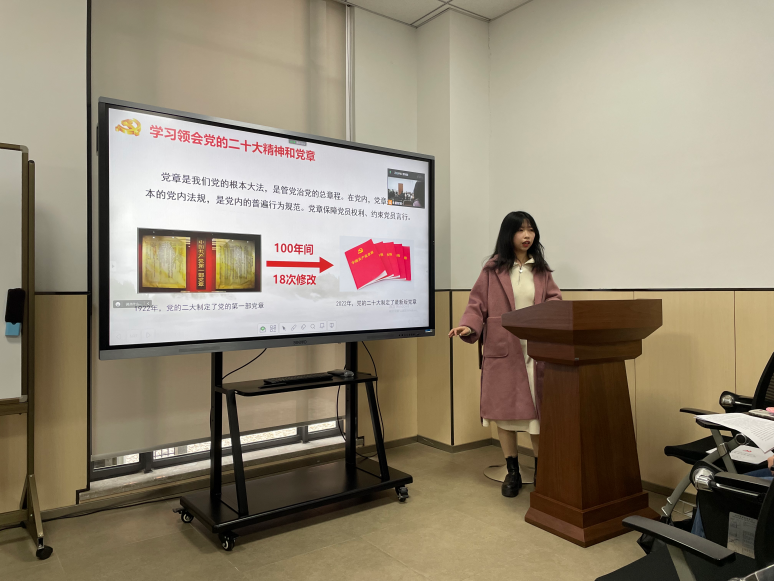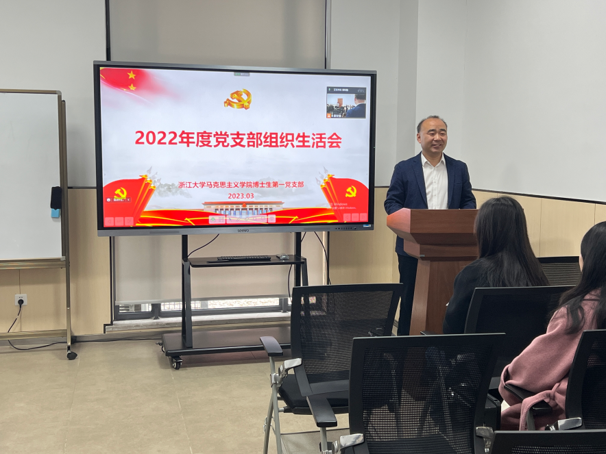会议伊始,学院副院长代玉启老师结合自己学习二十大精神的心得体会,对党员发展和党支部建设提出了要求和希望,勉励同学们要守正创新看理论,时刻以博士生党员的标准严格要求自己,坚持学习立身,服务学科发展;胸怀天下重实践,自觉将党的二十大精神转化为踏实奋进的思想武器;简单充实过日子,持续丰富学习的形式和内容,创新学习载体。