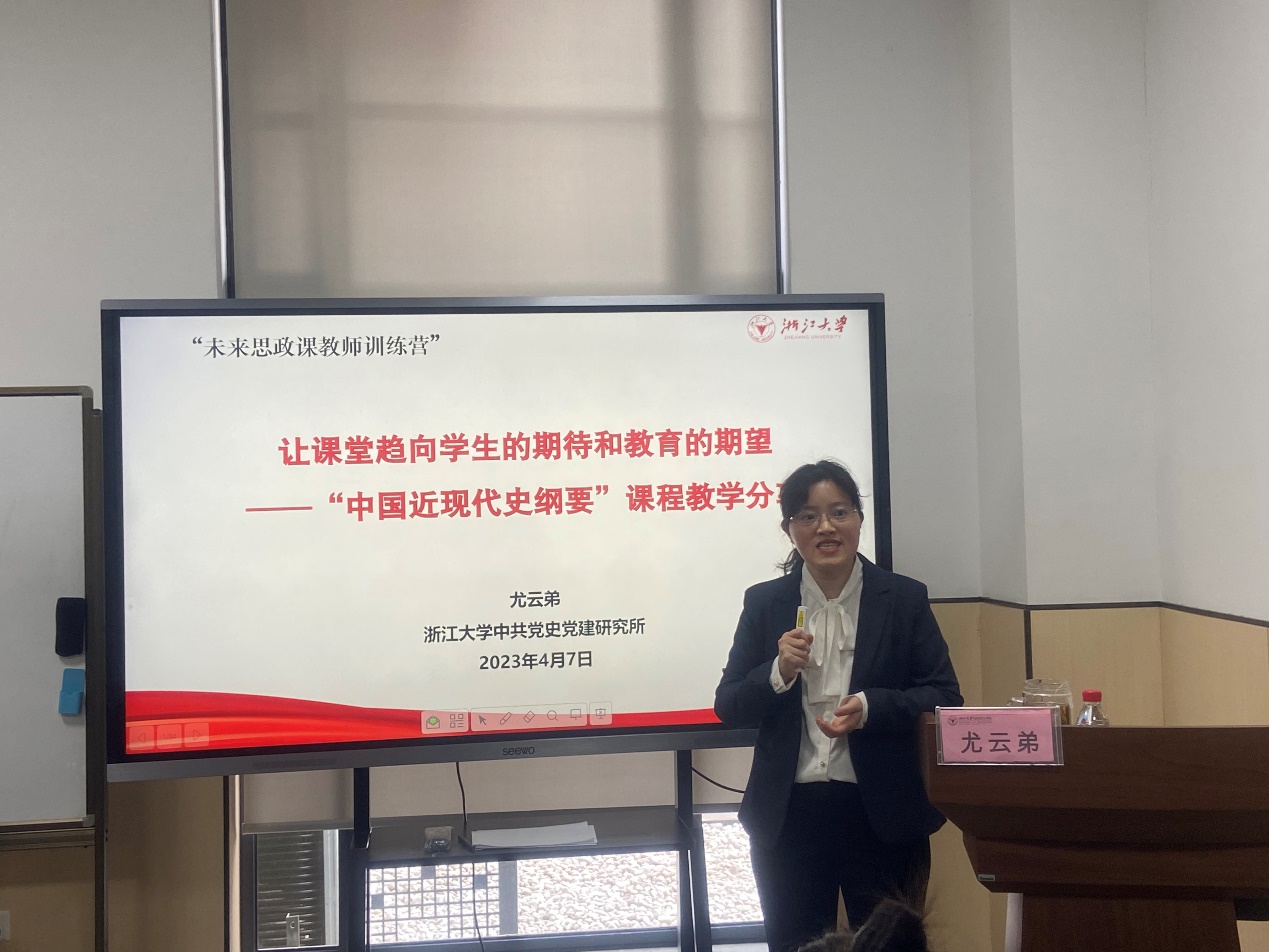 4月7日上午,2023年马克思主义学院“未来思政课教师”训练营之“纲要”课程介绍与教学指导在紫金港校区成均苑2幢104教室顺利举行。本次活动由浙江大学中共党史党建研究所副教授尤云弟老师主讲。