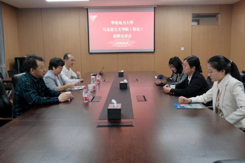 为深入贯彻党的二十大精神,加强高校间的交流与合作,扎实推进2023届毕业生就业工作顺利进行,4月11日下午,华北电力大学马克思主义学院(保定)招聘宣讲会在马克思主义学院309教室顺利举办。华北电力大学马克思主义学院(保定)院长王聚芹教授、副院长王建红教授、马克思主义原理教研室主任祈松林,浙江大学马克思主义学院党委副书记徐晓霞、马克思主义基本原理教研中心主任吴旭平出席、多名硕博士等参加。