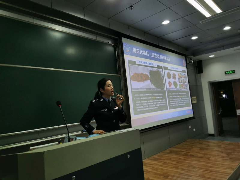 宣讲前,程警官和一同前来的陶警官向同学们展示了伪装性隐蔽性极强的第三代毒品新精神活性物质仿真模型,让同学们深感震撼。在讲解过程中,她从毒品分类及成瘾机制、毒品危害和涉毒违法犯罪、禁毒形势和戒毒工作,以及防毒拒毒、积极参与禁毒这四个方面入手,结合身边的真实案例进行了生动形象地阐述,并提出了许多令人深思的问题,引发了现场同学们开展积极讨论。