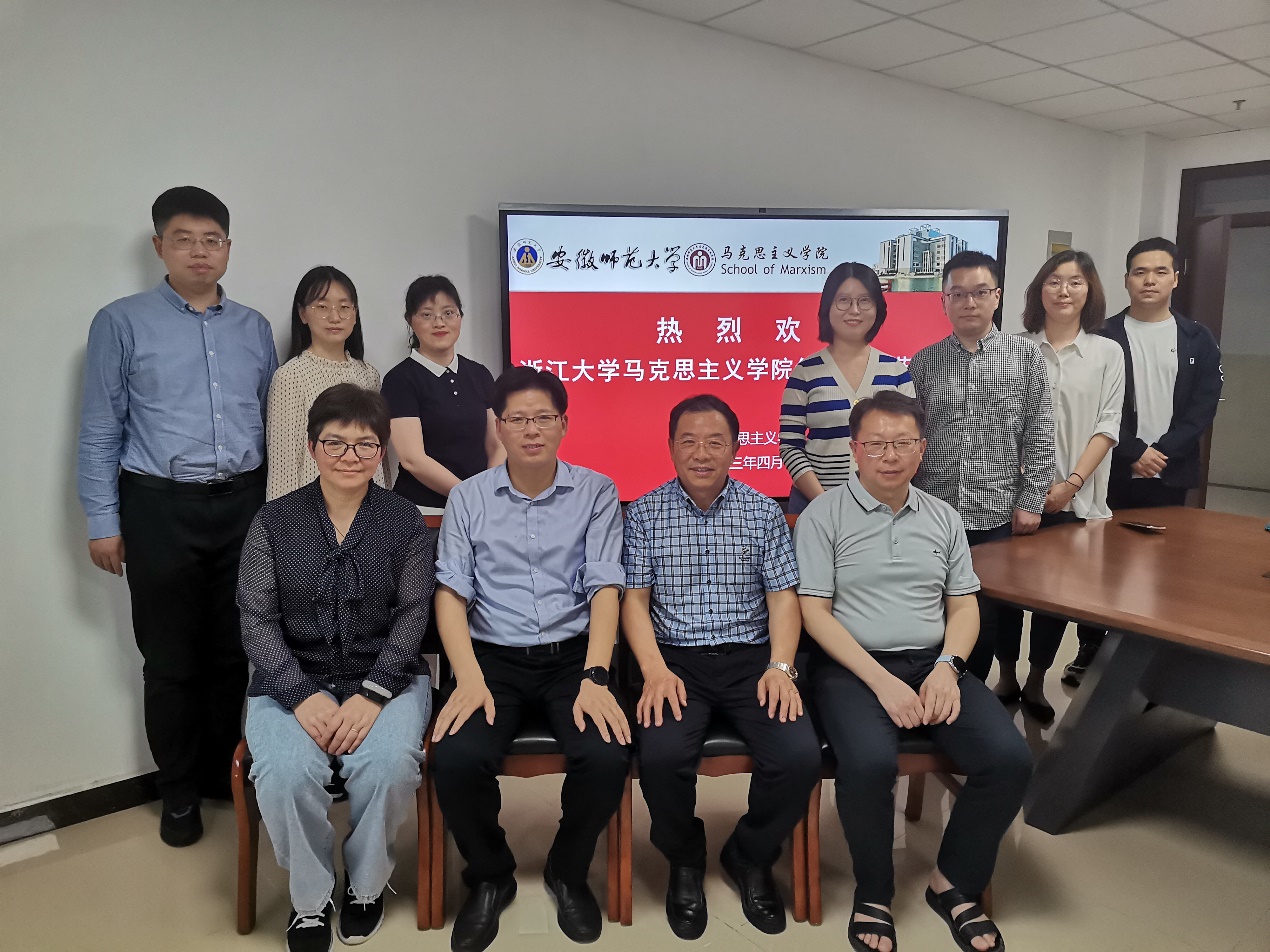 4月18日下午,双方举行座谈。严宏教授首先对浙大马院老师们的到来表示热烈欢迎,并介绍了安师大马院的基本情况。沈燕培教授介绍了该校中共党史党建学科建设与人才培养情况,郭理副教授介绍了《中国近现代史纲要》课程教学改革情况。